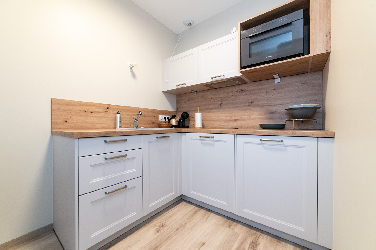 Cet appartement peut accueillir deux personnes. Équipé d’une cuisine, une salle de bain spacieuse, coin détente...tout le confort est à votre disposition pour un séjour agréable, de nature professionnelle ou personnelle.