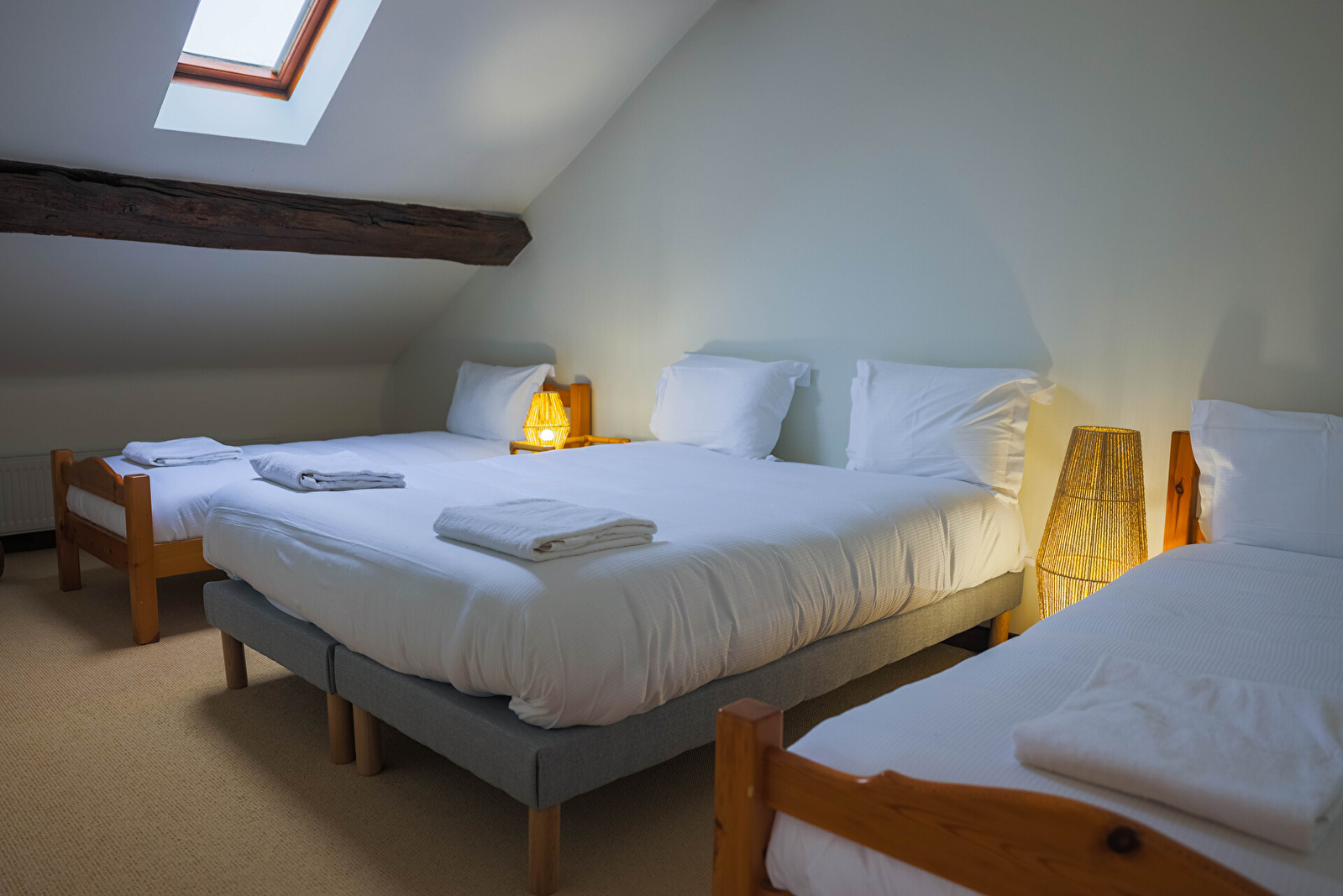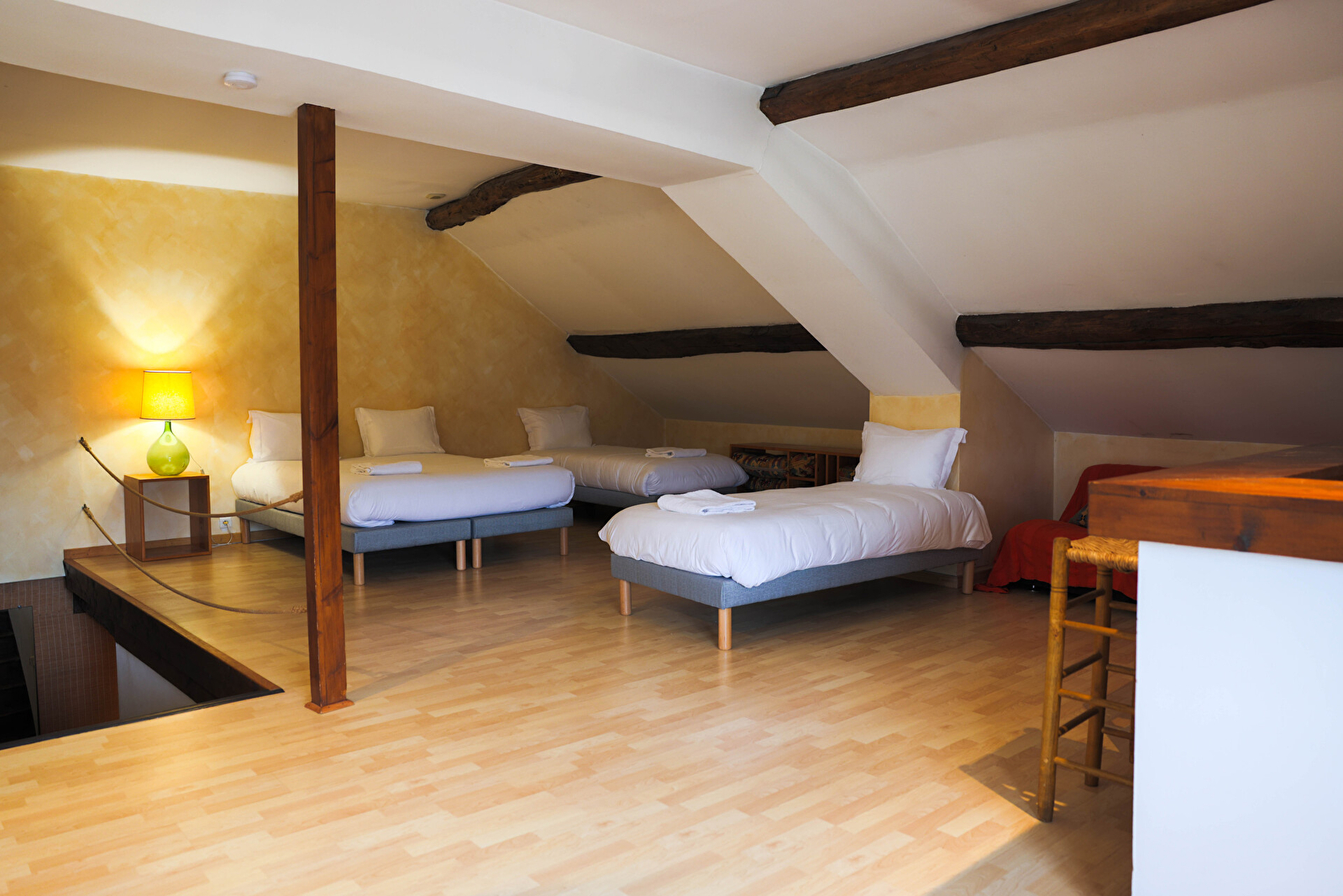 Au dernier étage, vous trouverez deux chambres ainsi qu’un dortoir composé d’un lit double et de deux lits simples, parfait pour les enfants ou les groupes d’amis. Une seconde salle de bain est également disponible à ce niveau pour plus de confort.