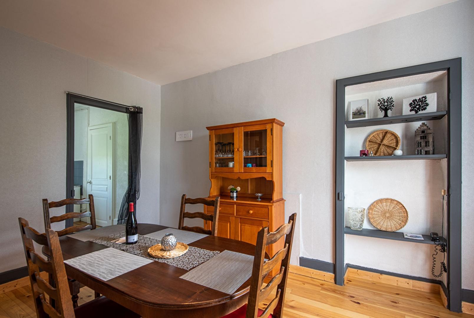 Composition : Maison individuelle abritant une petite salle des fêtes au rdc (capacité de 65 p. / fermée en cas de location du gîte). Wifi (fibre). Chauffage électrique. Gîte au 1er étage : séjour-cuisine-salon, 2 chambres (lit 2 p. 140x190cm / lit 2 p. 140x190cm + lit 1 p. 90x190cm), salle d'eau (douche), Wc indépendant. Terrain clos (cour & terrain naturel) + terrasse (abritée au besoin / abri voiture possible) + terrain de pétanque + parking. Commerces & services 8 km.