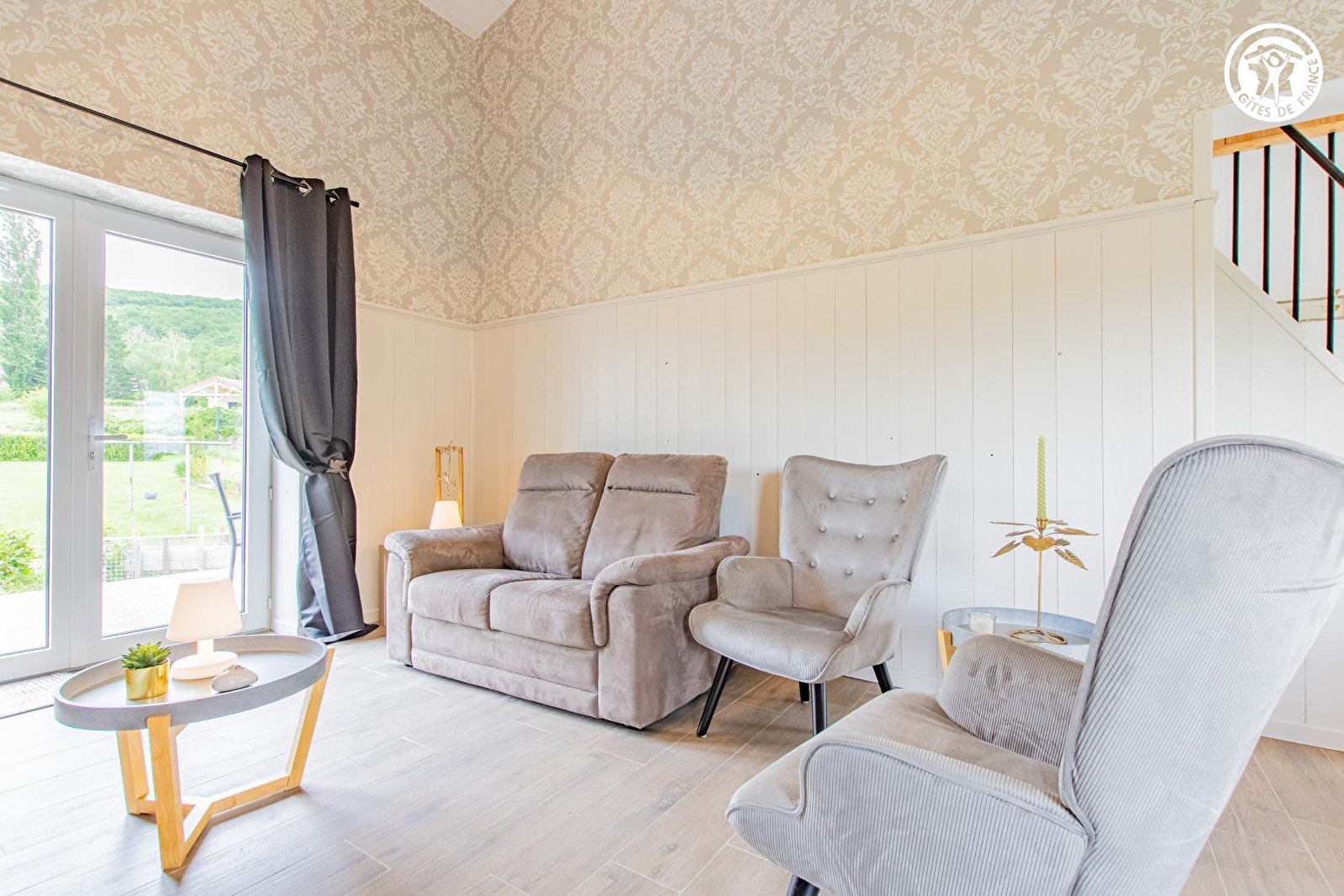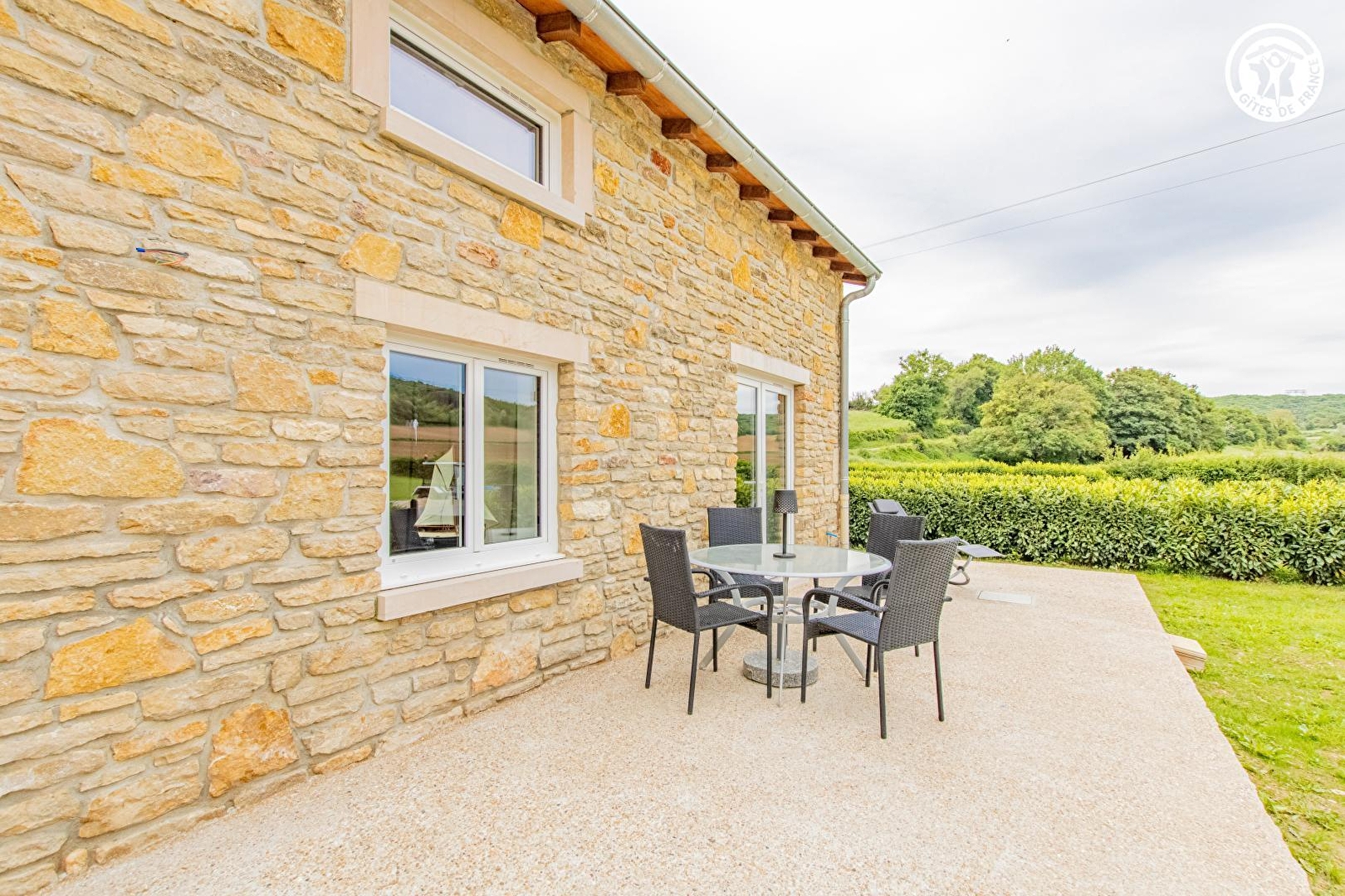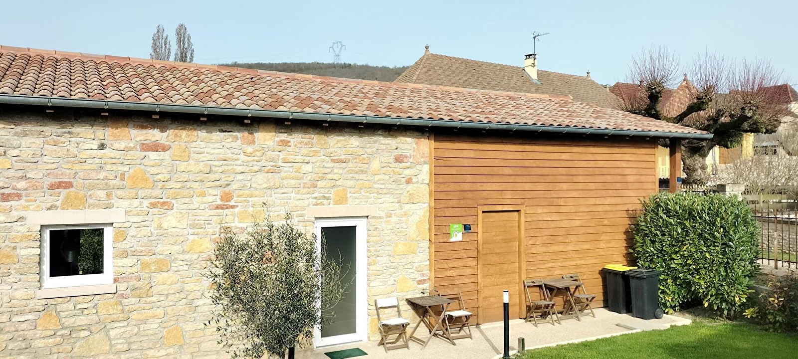 Belges d'origine et bourguignons d'adoption, Vinciane & Alain vous ouvrent les portes d'une authentique étable du XIXème siècle intégralement restaurée & revisitée en confortable villégiature de type "cottage rural" (jadis liée à l'élégante maison vigneronne de caractère voisine qu'ils occupent, datant de 1870, elle également parfaitement réhabilitée), blottie au calme à deux pas des vignobles, en lisière d'un bucolique plateau de champs & prairies niché sous les douces crêtes boisées des forêts alentour, aux confins d'un paisible & pittoresque petit village viticole du haut mâconnais. Parfaitement sauvegardé, lové en pleine campagne tournugeoise préservée au creux d'un apaisant vallon cerclé de vastes massifs forestiers sauvages, sur le versant sud de la colline de la Crâ (offrant par temps clair une vue panoramique exceptionnelle jusqu'au Mont Blanc), au sein d'un espace naturel protégé en ZNIEFF & "Zone Natura 2000" pour ses riches faunistiques & floristiques (à parcourir lors de relaxantes balades à pied ou VTT), le bourg typique de Royer profite d'un sublime écrin paysagé vallonné, conjuguant pleine nature, viticulture & agriculture. Gîte de très bon confort. Lumineuse pièce de vie dotée d'un beau volume "cathédrale". Chaleureux cachet campagnard aux accents contemporains. Ambiance douillette & cosy d'esprit "scandinave". Dépaysante chambre lovée sous les toits en mode "cocon cabane". Large terrasse panoramique ouverte sur les prés. Très belle vue dégagée sur la campagne environnante. Agréable jardinet engazonné (en partie pentu).