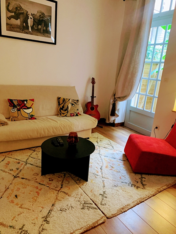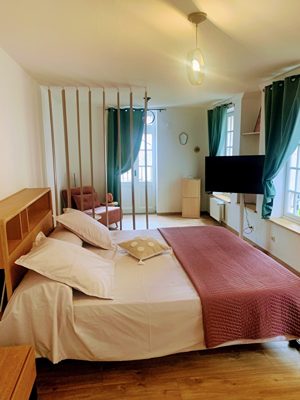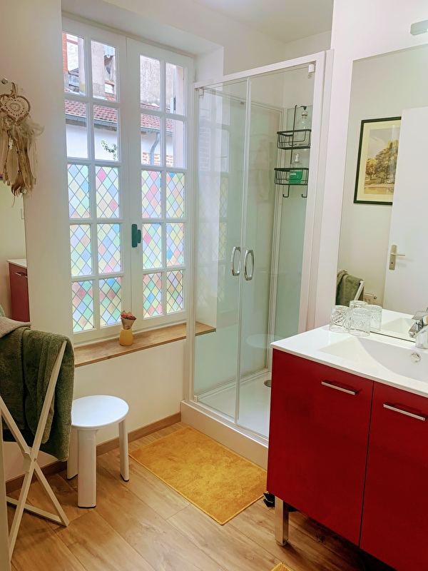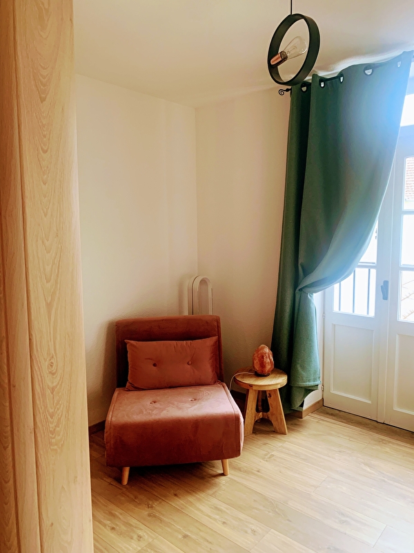 L'appartement : L'appartement L'Arcade se situe au cœur du centre ville à l'abri des bruits. Il possède une cour intérieur. Je ne recommande pas le logement aux personnes âgées qui rencontrent des difficultés à monter les escaliers, la chambre principale se trouvant à l’étage et les toilettes au rez de chaussée.
