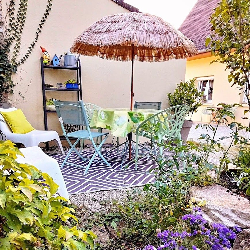 Dans un petit village calme à proximité de Nuits-Saint-Georges et à 20 minutes de Dijon, le gîte "l'Atelier de Flagey", gîte de plain pied mitoyen à l'atelier et à la maison des propriétaires, vous offre : 1 cuisine équipée ouverte sur salon/salle à manger, TV, wifi, 1 salle d'eau avec douche adaptée aux personnes à mobilité réduite et WC, 1 grande chambre avec 1 lit de 140 cm + 1 lit gigogne. Climatisation réversible. Possibilité de 2 couchages supplémentaires sur demande (10 €/nuit/pers). A disposition sur demande : 1 lit parapluie, 1 chaise haute et 1 baignoire bébé. Petite terrasse privative avec salon de jardin, parasol et barbecue. Piscine hors sol à partager avec les propriétaires, non chauffée, ouverte selon conditions météo (Mai à Septembre - de 10h00 à 19h00). 1 place de parking dans la cour (non fermée), et grand parking public gratuit à l'arrière du gîte. Si recharge de voiture électrique (pas de prise renforcée) : 10 €/charge à régler sur place.