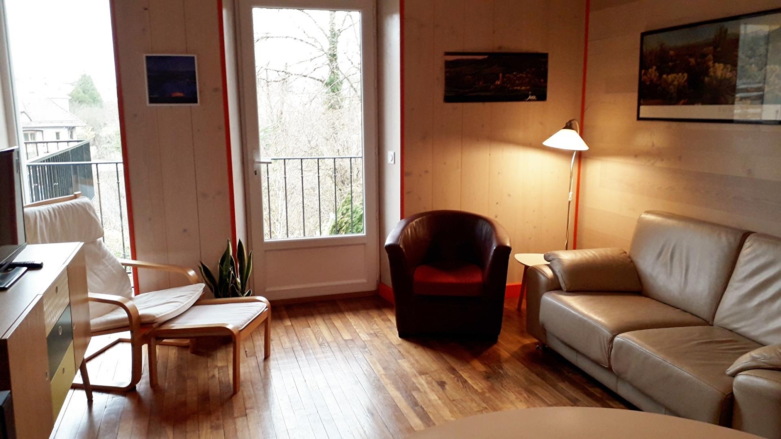 Appartement au 2eme étage, chaleureux, tout en bois avec terrasse et balcon. Endroit idéal et cocooning pour un court ou long séjour ! Appartement calme situé dans une maison tout en pierre au centre de Clairvaux les Lacs. Commerces à 50m à pied et lac avec plage à 4 mn à pied. Terrasse aménagée (table, parasol, fauteuils, transats relax) avec vue sur le jardin arboré. 3 chambres : 1 avec vue sur la terrasse comprenant 1 lit 160x200, 1 avec vue sur le jardin comprenant 1 lit de 90x190 et 1 chambre borgne avec 1 lit simple (90x190). La cuisine est entièrement équipée. TV à écran plat. Baignoire pour bébé. La salle de bains avec douche moderne hydro-massante et lavabo double. Toilettes séparées et buanderie avec machine à laver, table à repasser, produits de lavage... Possibilité de stationnement public au pied de la résidence ou dans un parking situé à 50 m. La location comprend le nécessaire literie (protections, draps-housses, taies d'oreillers, housses de couette). Chauffage et électricité sont compris dans le prix. Le forfait ménage obligatoire est en sus. Le lac de Clairvaux avec sa plage aménagée et ses abords vous offre un cadre ressourçant et magnifique ! Pas moins de 6 restaurants dans ce bourg touristique avec les spécialités culinaires jurassiennes. De nombreux sites et lacs sont à visiter à Clairvaux et ses alentours comme le village du bois unique en France, les cascades du Hérisson, Baume les Messieurs, le lac de Chalain, Château Chalon, les grottes, le parc régional du Haut Jura, les gorges de la Langouette, le lac de Vouglans ... De nombreux sentiers de randonnée en forêt ou au bord des lacs vous enchanteront ! Vous trouverez également des locations de vélos (y compris électriques) et de nombreuses activités de plein air comme canoë kayak, accroc branche, jeux aquatiques, randonnée équestre, vol en montgolfière, en delta plane ...