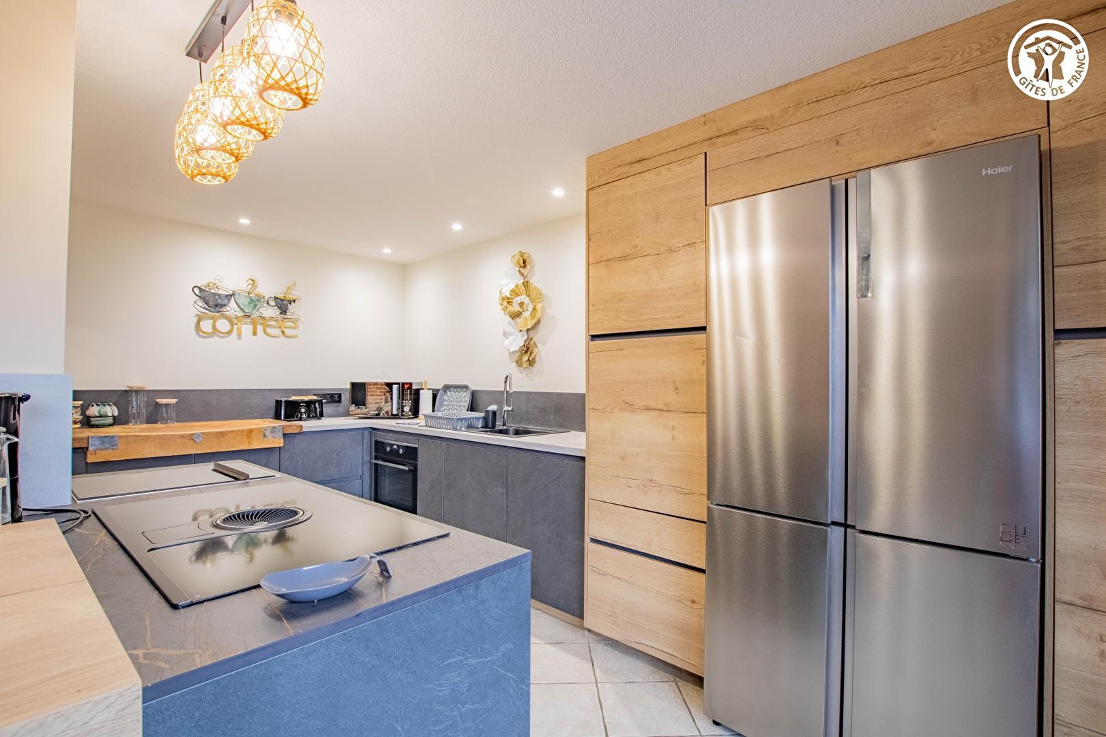 Composition : Maison mitoyenne de plain-pied. Chauffage central fioul + PAC. Poêle granulés bois. Climatisation. Wifi (fibre). Séjour-cuisine salon, 3 chambres (2 comprenant 1 lit 2 p. 160x200cm + 2 lits 1 p. 90x190cm superposés / lit 2 p. 140x190cm) dont 1 avec salle de bain privée (baignoire + douche multijets), "coin nuit" d'appoint avec TV (espace couchage avec canapé convertible 2 p. 140x190cm), salle d'eau (douche/Wc), Wc indépendant, buanderie (annexe extérieure). Terrain clos (3800m² avec portail électrique) + terrasse + terrasse couverte (avec billard) + mare privée clôturée + piscine chauffée (4x10m / de mai à septembre) + terrain de pétanque + table ping-pong sous abri + abri voitures (2 places) + parking privés. Borne recharge voitures électriques (service payant). Supérette 4 km. Supermarchés 8 km.