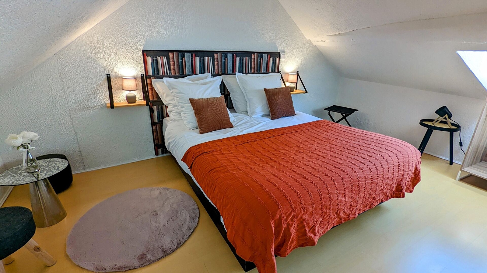 A 15 minutes de Dijon, au bord du Canal de Bourgogne, avec toutes les commodités, jolie maison atypique, comprenant : au rez-de-chaussée (surélevé) : salon (canapé convertible offrant 2 couchages d'appoint avec supplément), TV, enceinte Bluetooth, ouvert sur salle à manger et cuisine équipée. A l'étage inférieur : Salle de bain avec baignoire et WC. Un espace "zen" avec sauna infra-rouge, un salon de détente avec tisanerie. Au 1er étage : 1 chambre avec 1 lit de 160 cm et 1 chambre avec 2 lits de 90 cm. Climatisation réversible. Petite terrasse avec salon de jardin, barbecue, parasol. 2 animaux max. admis. Gîte non adapté aux personnes à mobilité réduite (escaliers "raides").