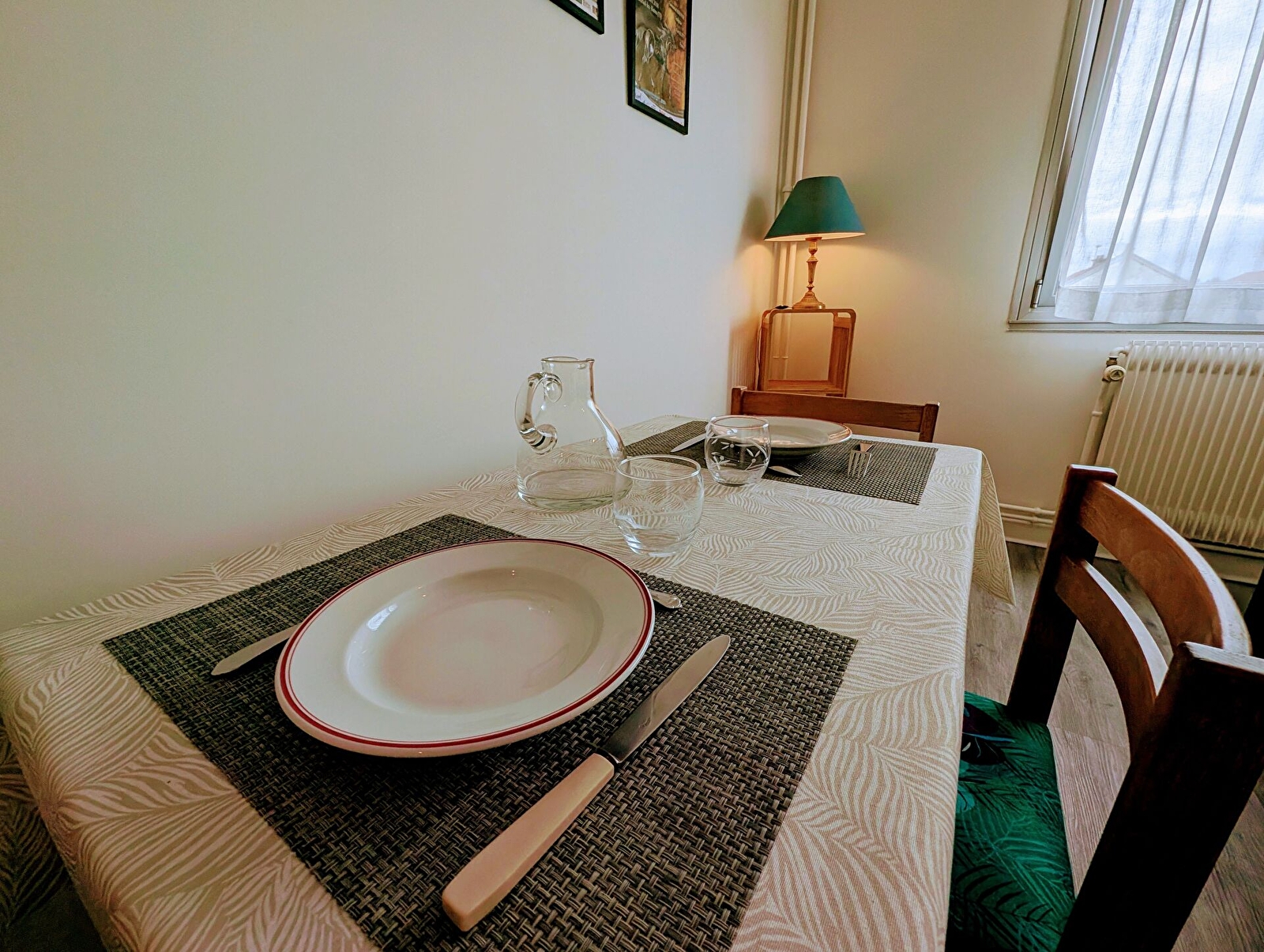 Situé au 2ᵉ étage d’un immeuble à deux pas du centre-ville et des thermes de Luxeuil-les-Bains, l’appartement Le 3B allie confort et praticité. Son séjour lumineux comprend un coin salon avec canapé et TV, ouvert sur une cuisine parfaitement équipée (four, lave-vaisselle, machine à laver/sèche-linge, plaque à induction, hotte, cafetières filtre et dosette, bouilloire, grille-pain, ustensiles de cuisine). Une chambre spacieuse et lumineuse avec lit double 160x200 et rangements, ainsi qu’une salle d’eau moderne avec WC et sèche-cheveux, complètent l’ensemble. Pour plus de confort : séchoir, table et fer à repasser sont à disposition. Proposé en formule tout inclus (draps et linge fournis, lit fait à l’arrivée, linge de toilette, charges et ménage de fin de séjour compris), cet appartement est idéal pour les curistes, avec un tarif préférentiel pour les séjours de 3 semaines.