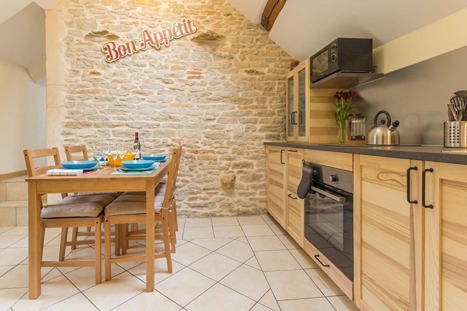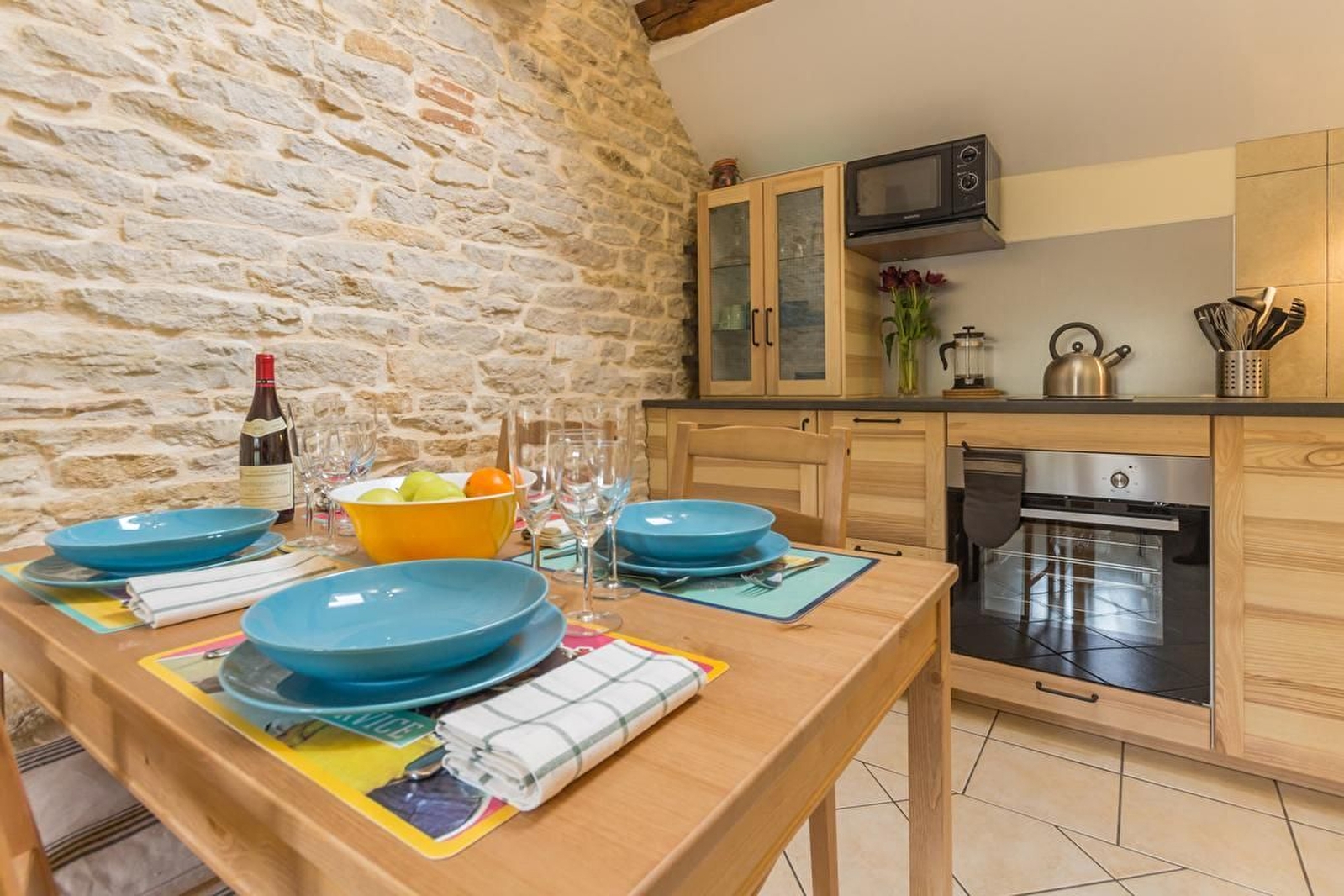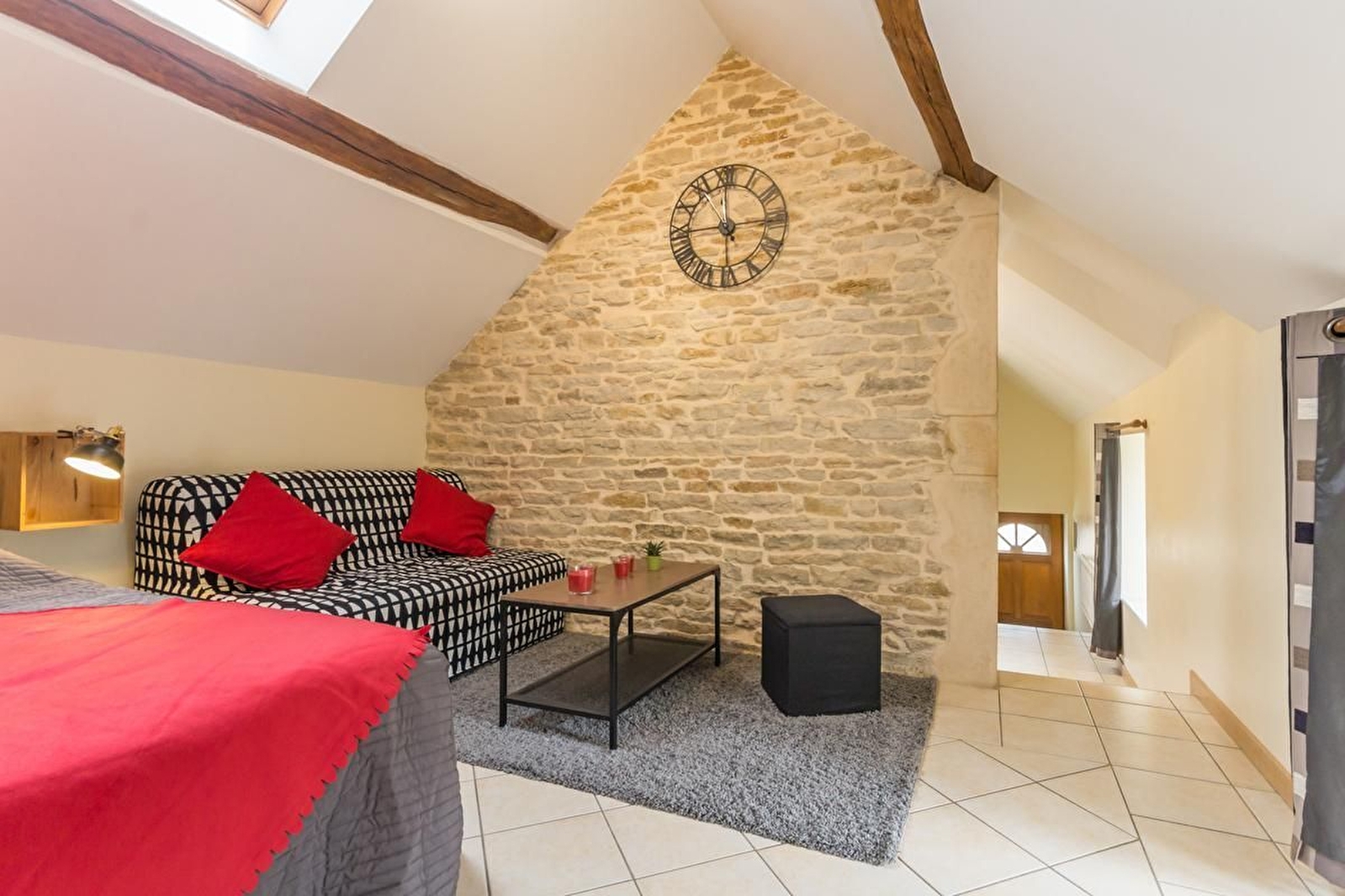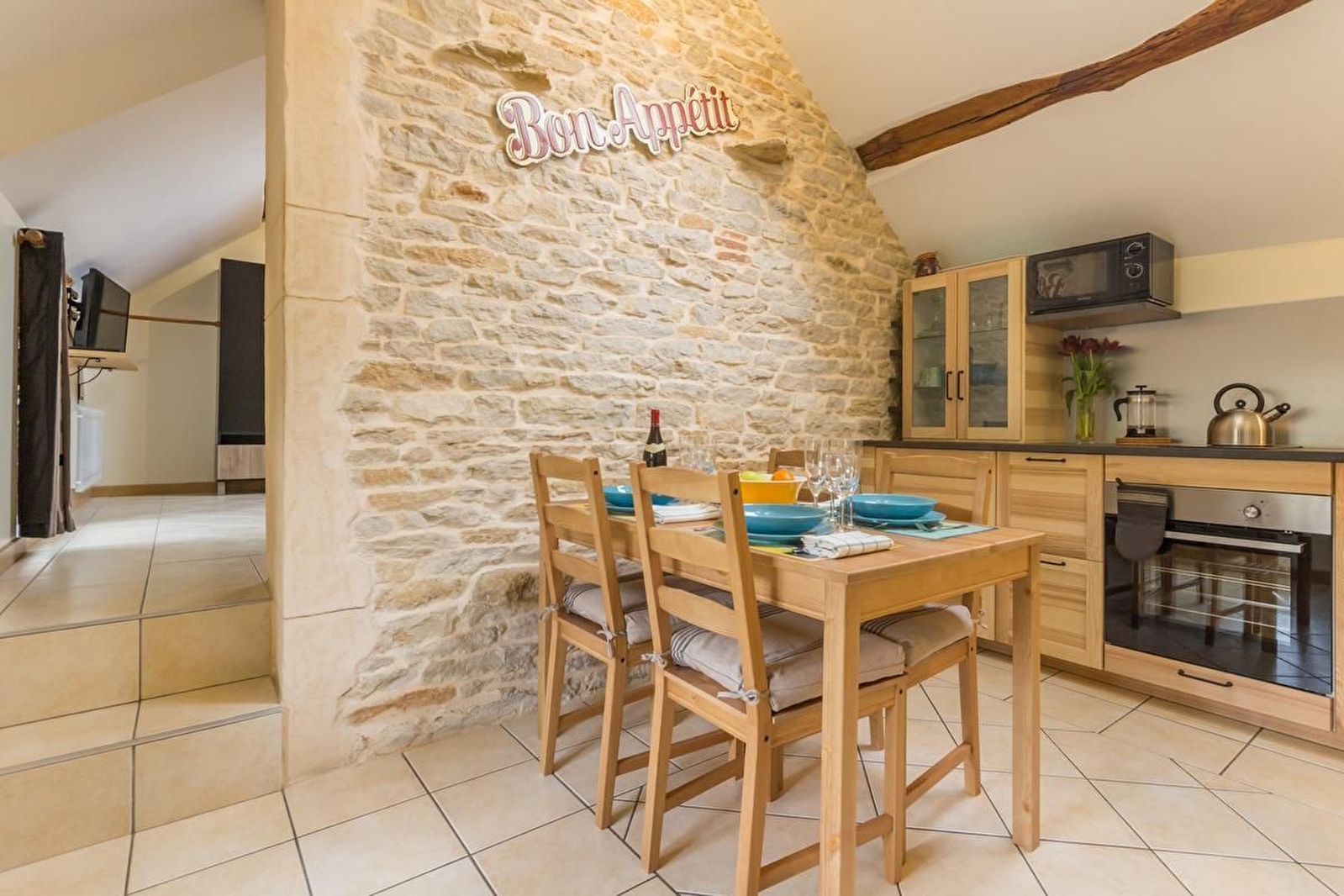 A proximité de Beaune, la capitale du Bourgogne, maison mitoyenne en pierres rénovée en rez-de-chaussée surélevé. Salle à manger avec cuisine équipée ouverte. Quelques marches pour accéder à la chambre avec pierres apparentes et belle hauteur sous plafond : lit 140 et coin salon TV avec canapé convertible offrant 2 couchages supplémentaires. Salle d'eau et WC. Terrasse privative à côté du gîte dans la cour des propriétaires. Parking devant la maison. Possibilité location à la nuitée : 85 € pour 2 personnes.