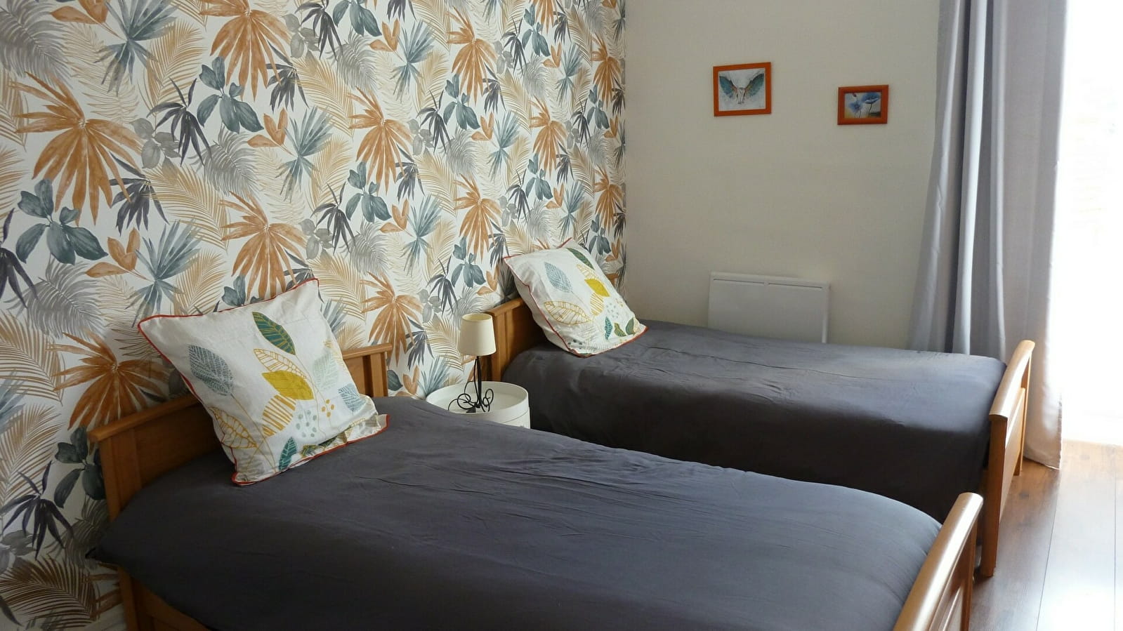 Appartement meublé d'environ 70m2, composé de 2 chambres de 16m2 chacune, pouvant accueillir jusqu'à 6 personnes (1 lit double + 2 lits en 90). 2 lits pliables en 90x190 complètent l'offre