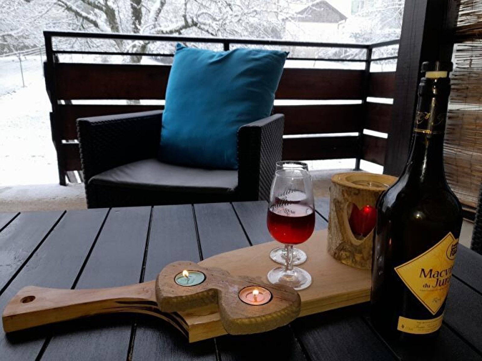 Au cœur du vignoble Jurassien, dans une maison vigneronne du village de Pupillin, réputé pour ses vins, vous séjournerez dans un agréable appartement lumineux situé au 1er étage de la maison de la propriétaire. Il se compose d'une cuisine toute équipée avec espace repas, d'un salon avec canapé et TV, d'une chambre avec 1 lit double (140*190), literie neuve et de belle qualité, d'une salle d'eau avec cabine de douche et WC. Linge de lit et de toilettes fournis. Côté extérieur, vous pourrez profiter d'une belle terrasse couverte de 12 m2 aménagée avec salon de jardin et barbecue. Idéalement situé pour découvrir, Arbois capitale des vins du Jura et Poligny, capitale du Comté, vous pourrez également découvrir 2 sites classés au patrimoine mondial de l'UNESCO : la grande saline de Salins-les-Bains et la Saline Royale d'Arc-et-Senans, Au village : départ de 3 sentiers de randonnées de 6 à 8 Km chacun l'un dans le vignoble et les 2 autres en forêt permettant de découvrir la faune et la flore dont le foyard Président et l'arboretum rassemblant des espèces locales. . . . un restaurant réputé Le GRAPIOT, des caveaux de dégustation vente où vous serez accueillis chaleureusement, l'église du XIX ème Siècle ainsi qu'un belvédère avec son aire de pique-nique , son kiosque d'observation, sa table d'orientation avec vue panoramique sur le vignoble et le finage Jurassien.