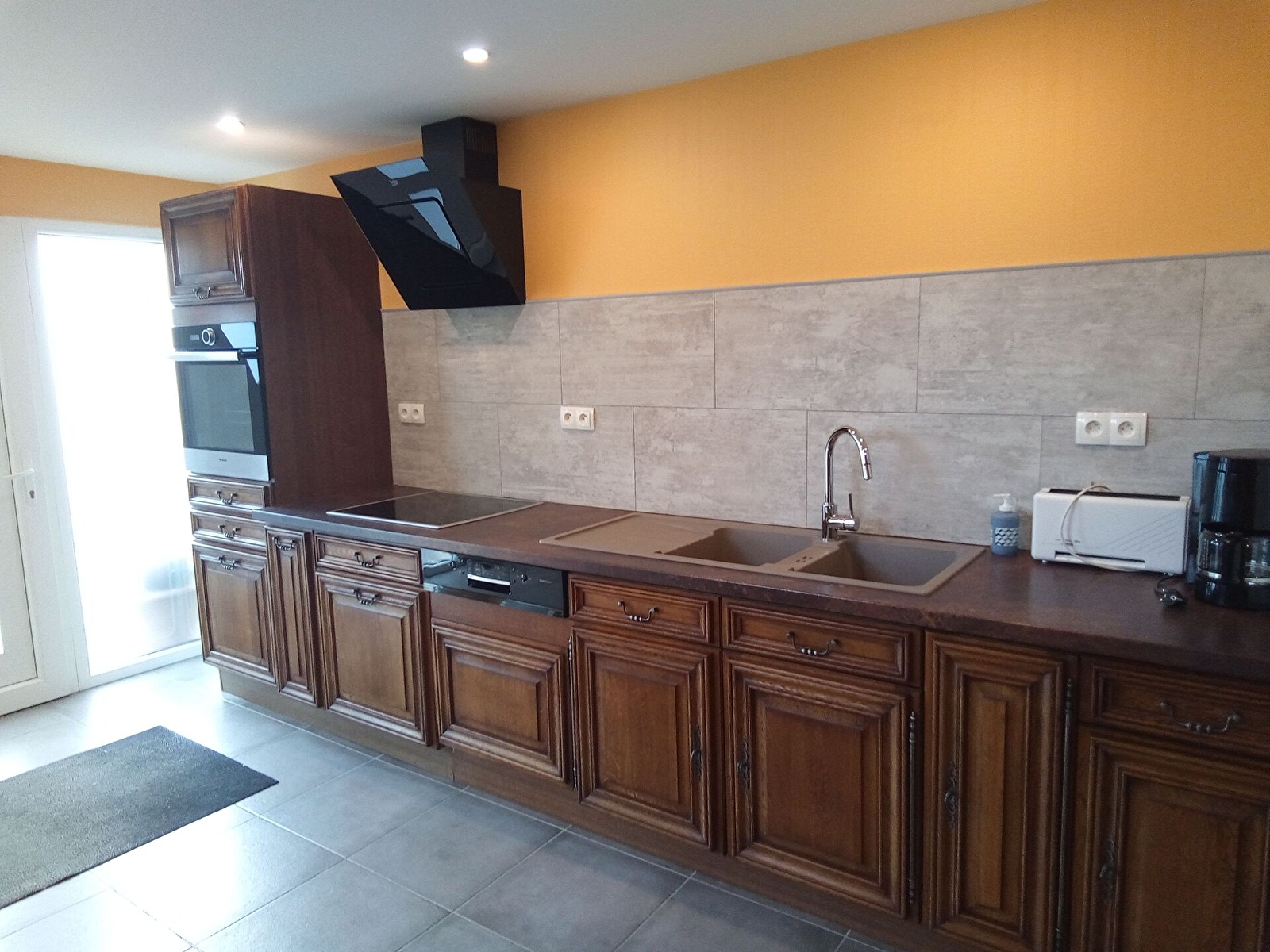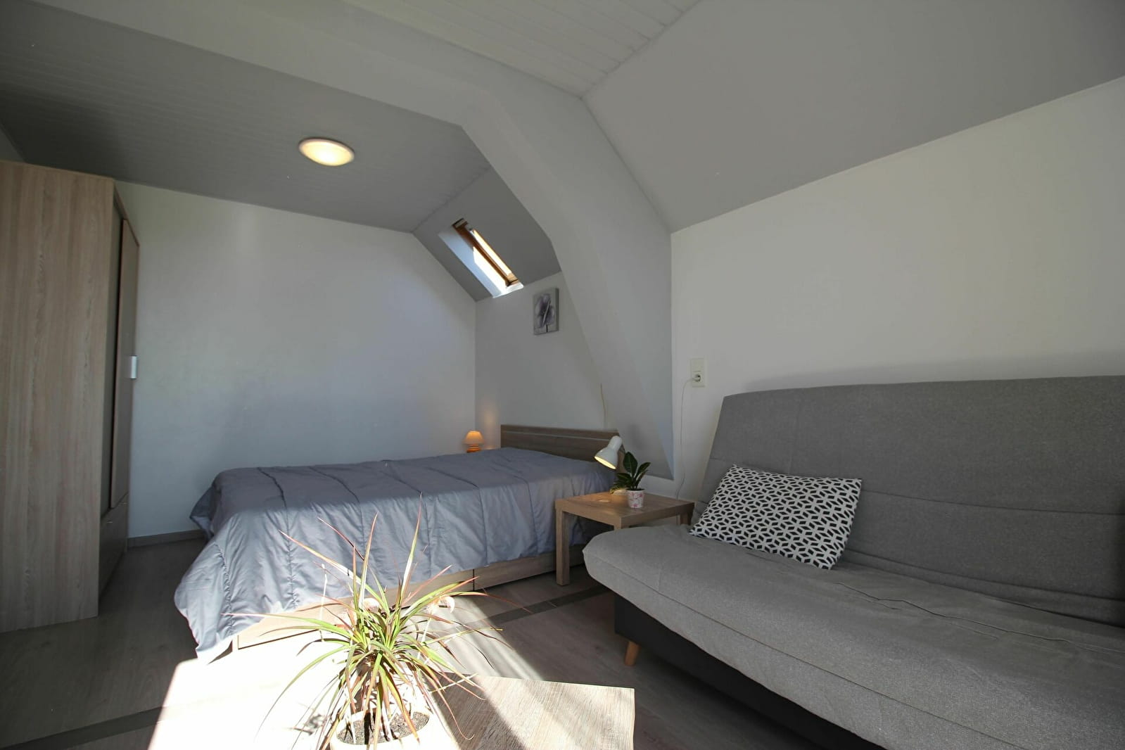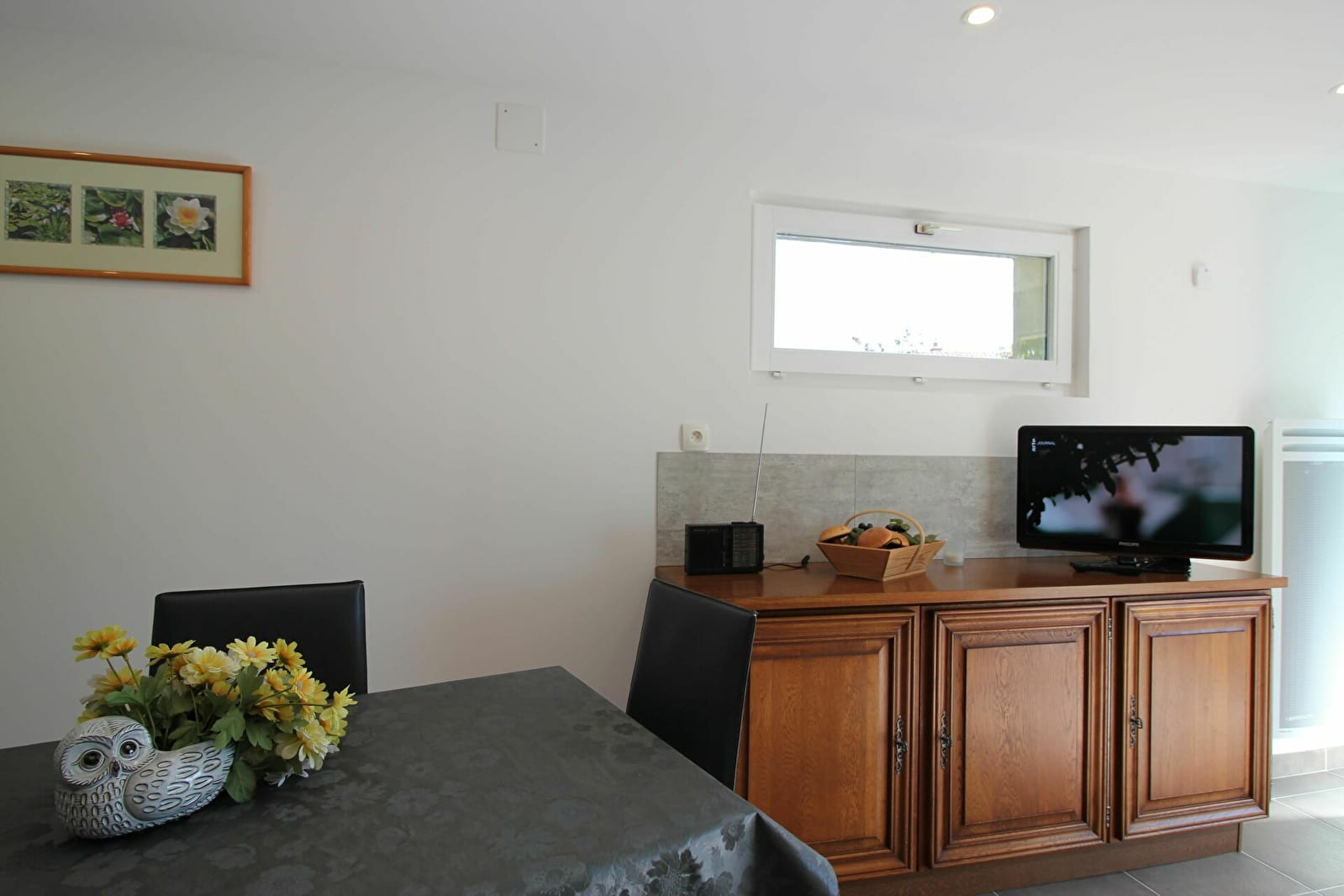 Au rez-de-chaussée vous entrez par le séjour avec table et cuisine équipée, télévision. A l'étage, la partie nuit avec une chambre double avec un lit de 140*190cm et coin salon TV. Une deuxième chambre avec deux lits simples en tiroir, rangement et accès au balcon, une salle d'eau avec douche et WC. Vous disposez d'un terrain clos et espace de parking dans la cour.