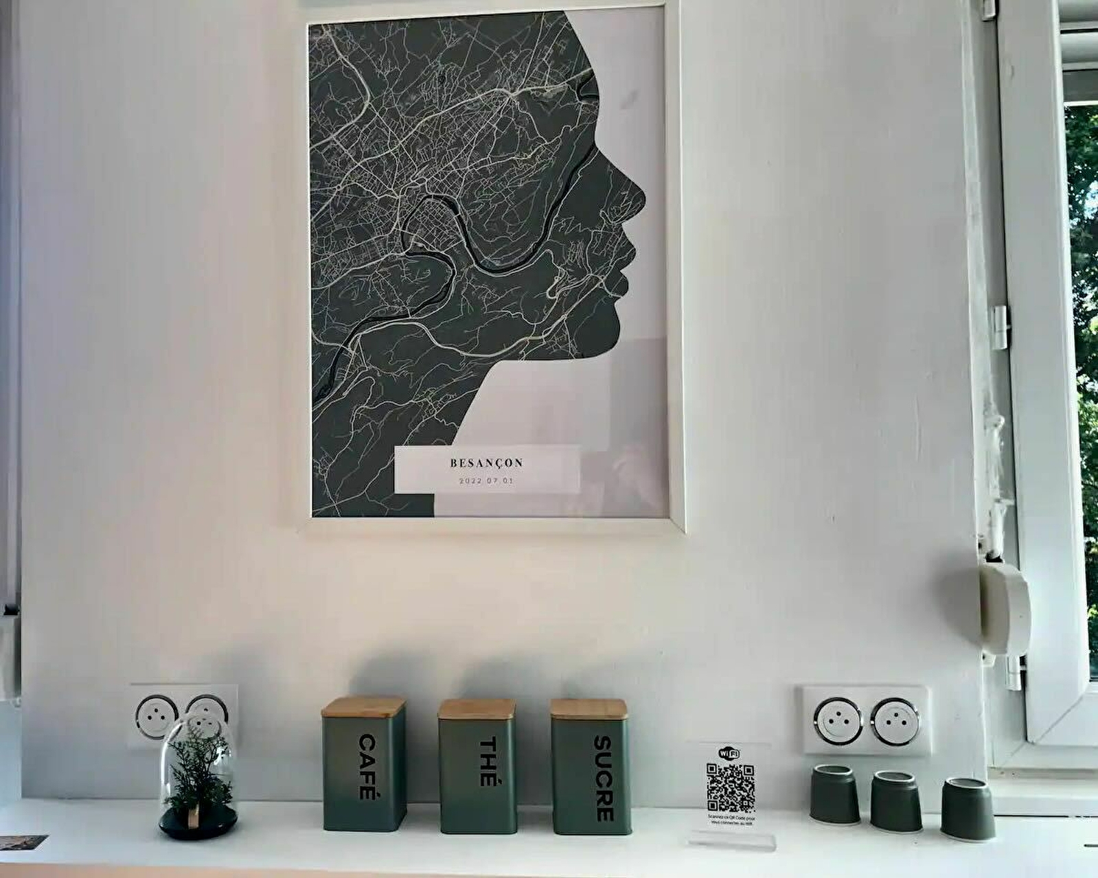 Espace de travail dédié, une chambre privée avec wifi, bien aménagée pour travailler.