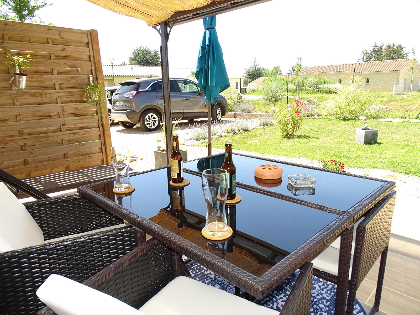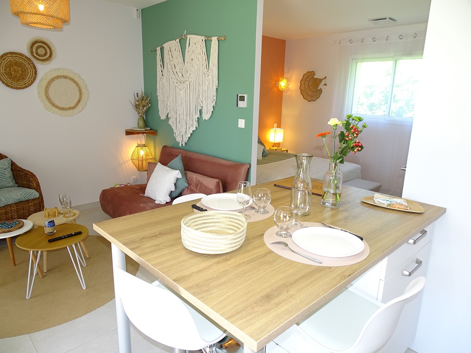 Notre studio de 30 m² entièrement équipé et climatisé avec une terrasse privative et parking sur place.