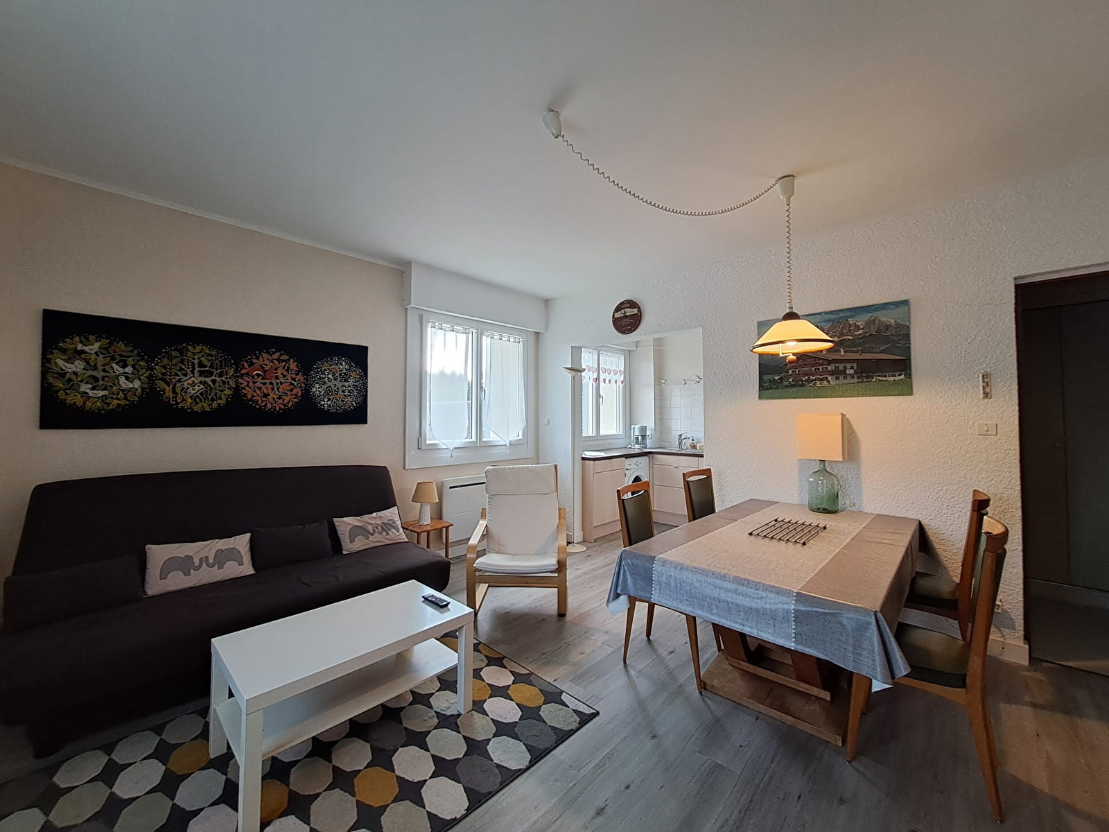 Situé dans la résidence "Le Bois de L’ours", l’appartement de 57m² au 1er étage est composé d’une pièce principale avec coin cuisine/repas et canapé lit clic-clac. Une chambre indépendante avec lit de 140cm et lits gigognes de 90cm. Salle d’eau et WC. Parking privé à la résidence.