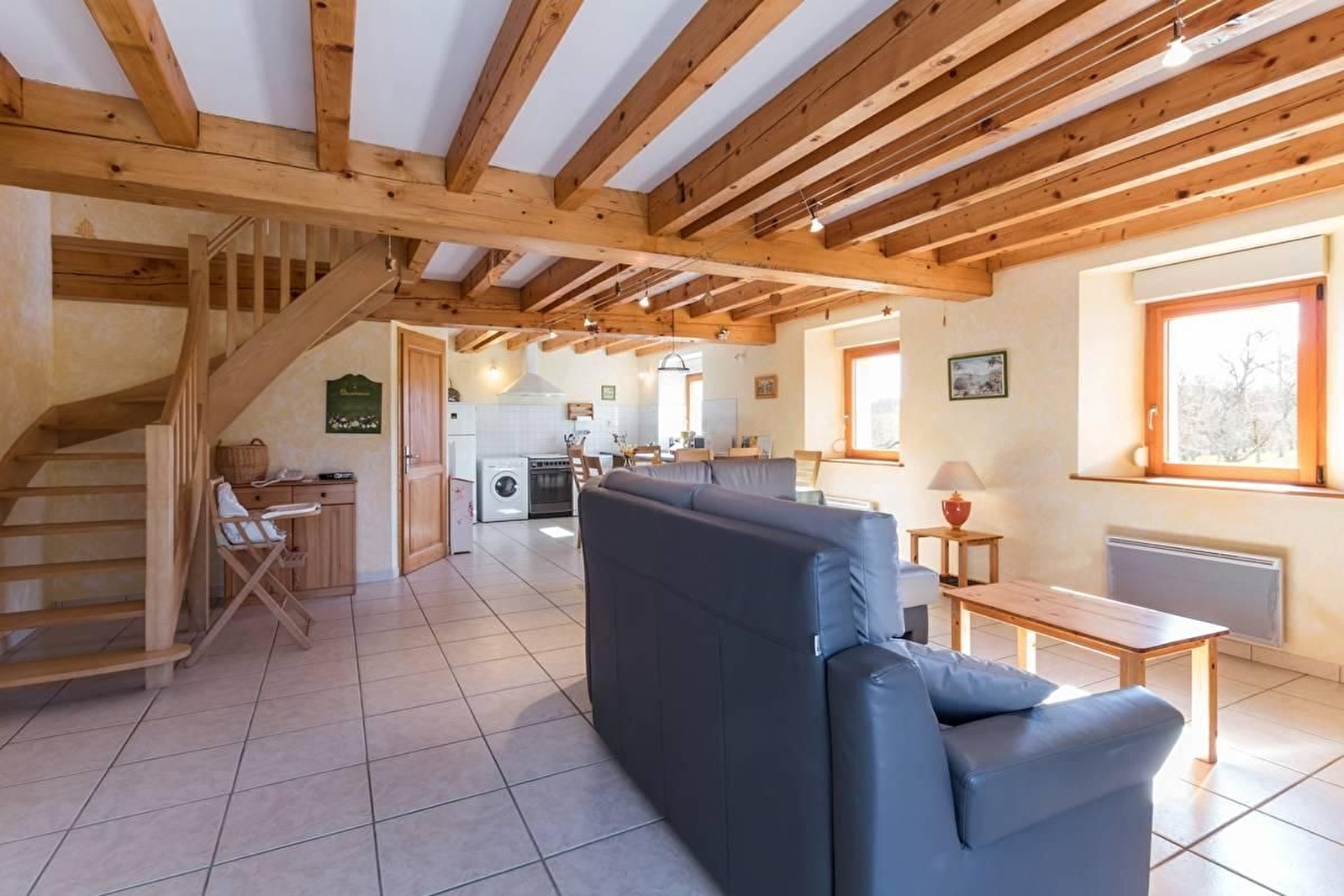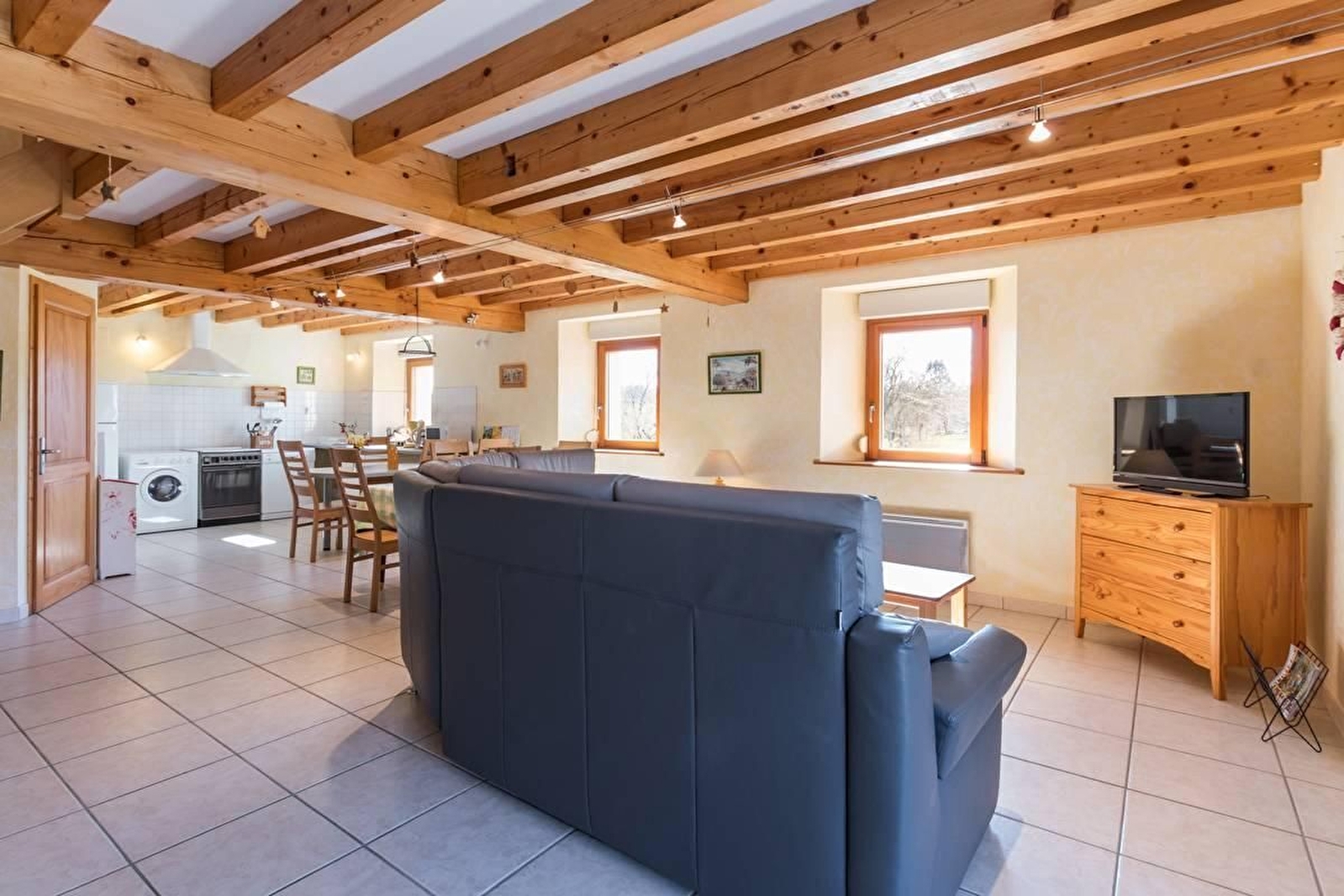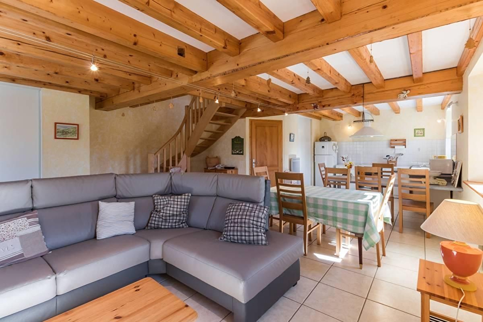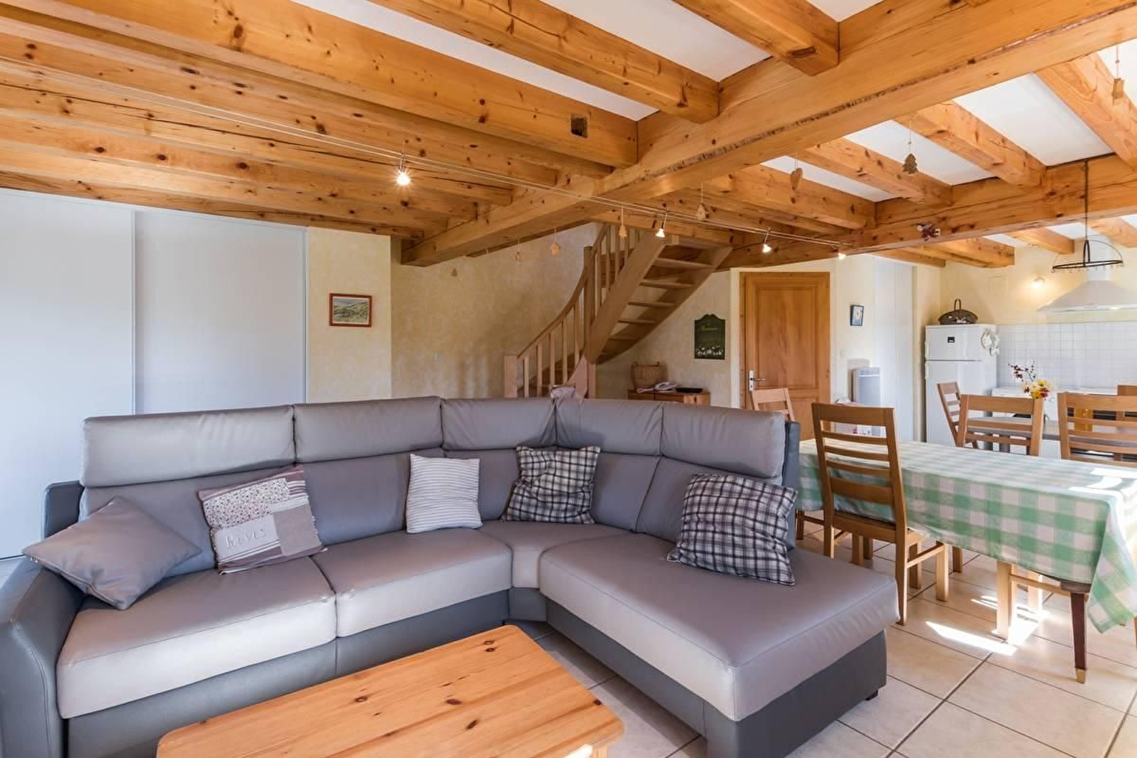 Le Borrauchî, gîte au calme, au cœur des Vosges Saônoises, entouré de vergers : nombreux pruniers, d'où son nom en patois : Borrauchî. Dans un petit hameau à 2,5 km du bourg, maison indépendante mitoyenne à un bâtiment agricole (sans nuisance) et comprenant au rez-de-chaussée surélevé : entrée, grand séjour/ cuisine/salon avec canapé, salle d'eau, WC. Au premier étage : 1 chambre (lit 2 personnes), 1 chambre (1 lit 2 personnes - 1 lit bébé), 1 chambre de 9-10 m2 (2 lits 1 personne), une pièce avec WC, lavabo, table à langer. Internet WIFI. Jean, agriculteur, pourra vous faire découvrir son métier. Terrain privatif non clos donnant sur le verger. Portique. Grande terrasse (36 m²) accessible de plain-pied depuis le séjour.