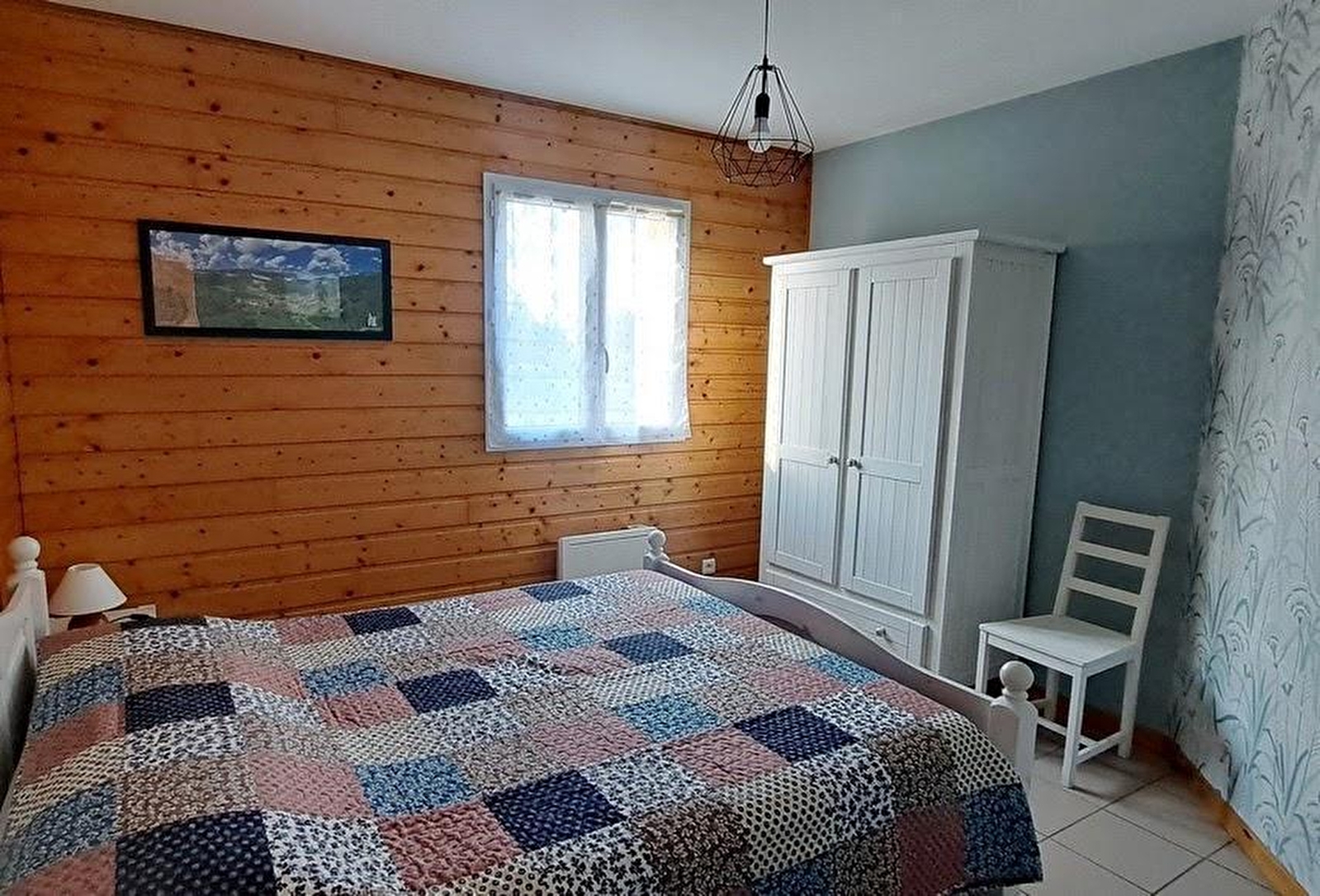 Maison indépendante, séjour-salon, lecteur DVD, coin-cuisine intégré, réfrigérateur-congel, salle d'eau, WC indépendant, ch1: 1 lit 2 pl (160x200), 1 lit bébé, ch2: 1 lit 160x200, ch3: 2 lits 1pl, chauffage électrique, terrasse, salon de jardin, barbecue, terrain entièrement clos. Grand terrain multi-jeux sur place. Idéalement situé sur le 1° plateau dans un petit village de caractère, au départ de nombreuses randonnées, et autres activités variées. Équipement bébé. Charges non comprises. Pour les chèques vacances voir directement avec le propriétaire. Taxe de séjour en sus. (Pour l'accueil de plus d'un animal se renseigner auprès du propriétaire).