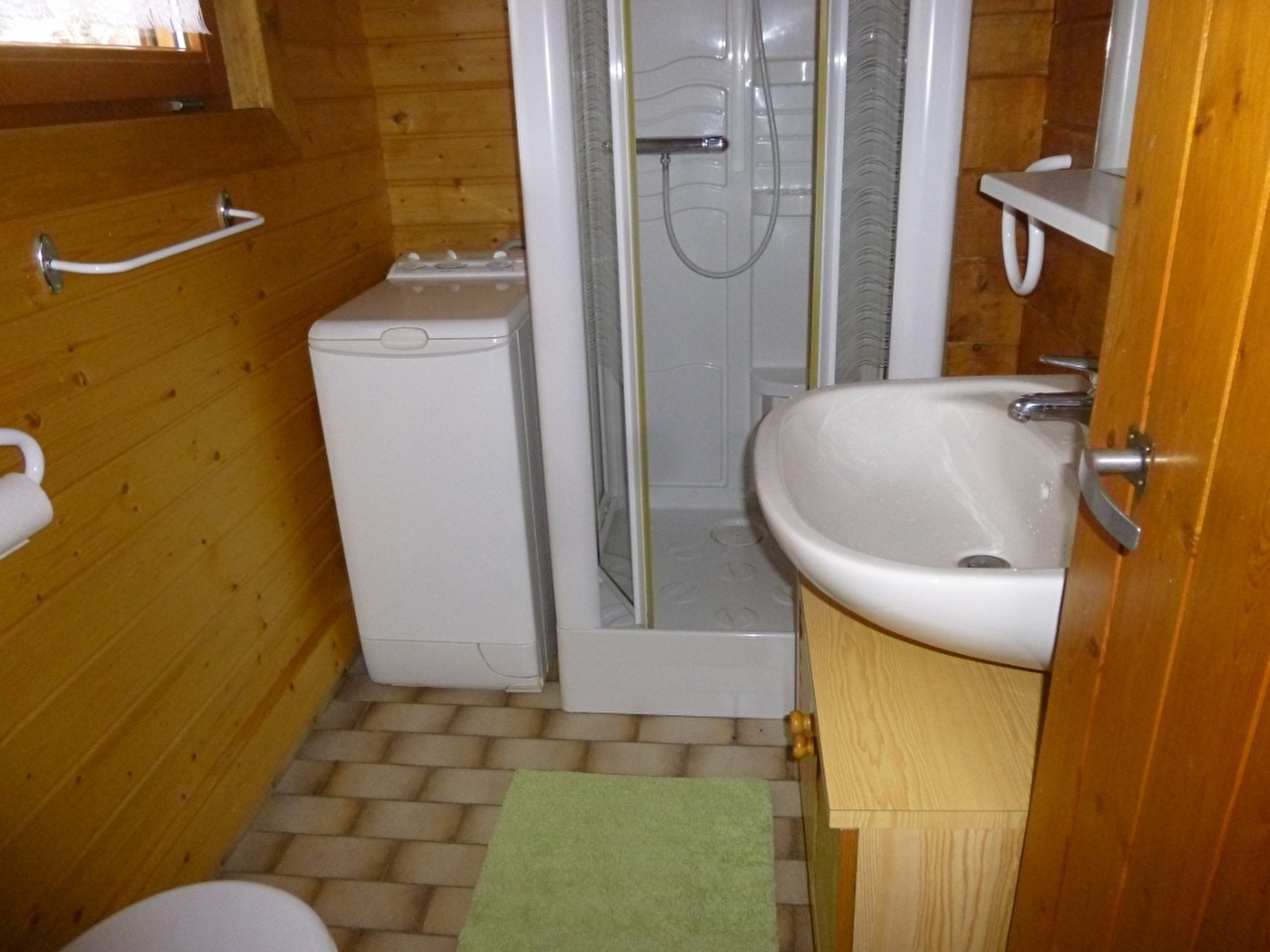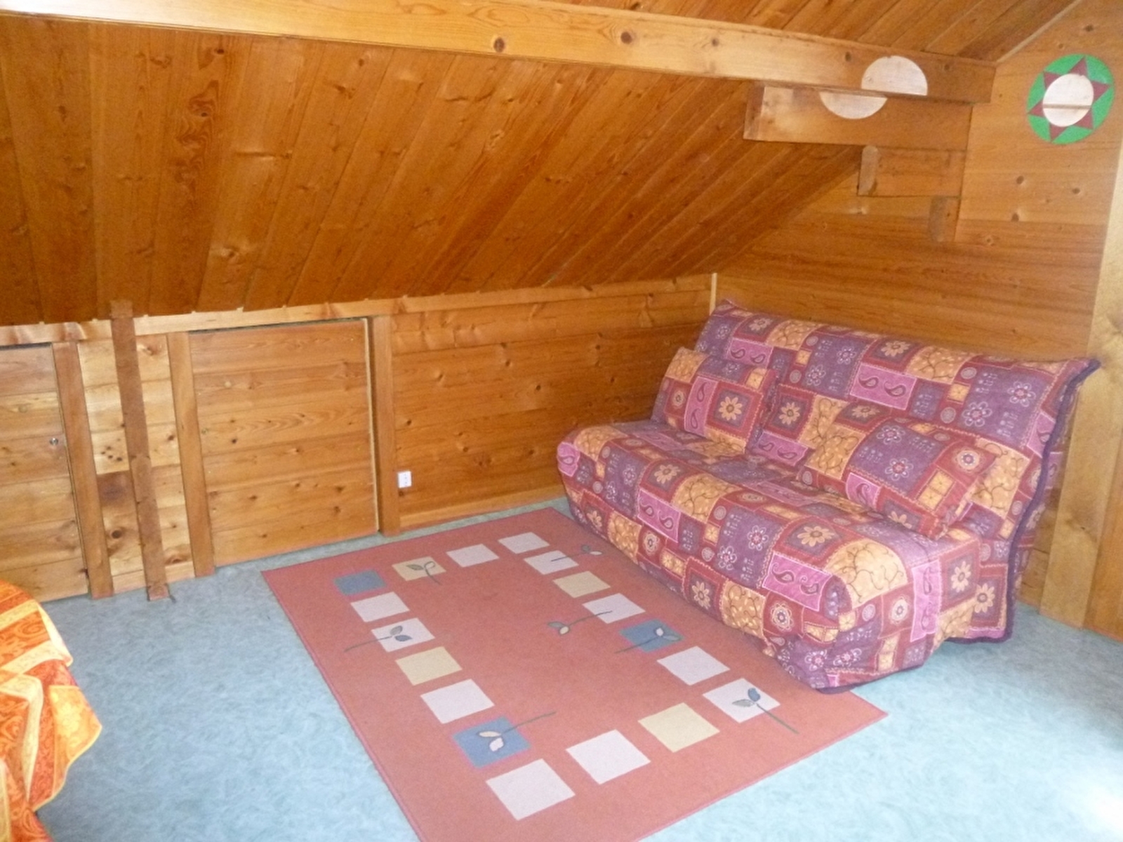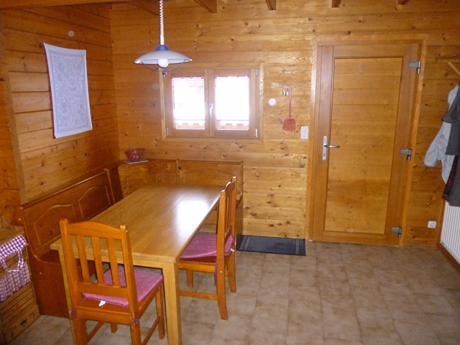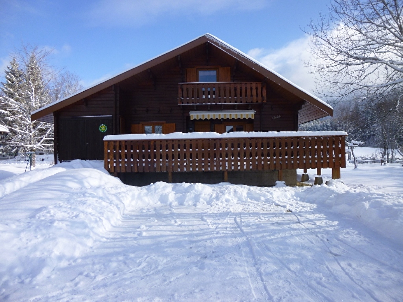 Chalet indépendant, avec au rez de chaussée: séjour, salon, coin cuisine, salle d'eau avec WC, une chambre avec un lit 2 places. A l'étage: une mezzanine, et 2 coins nuit pour 1 personne, terrain attenant non clos, cour, balcon, barbecue, salon de jardin. Chauffage électrique. Toutes charges comprises. Table de pique-nique, parking privatif sur place.