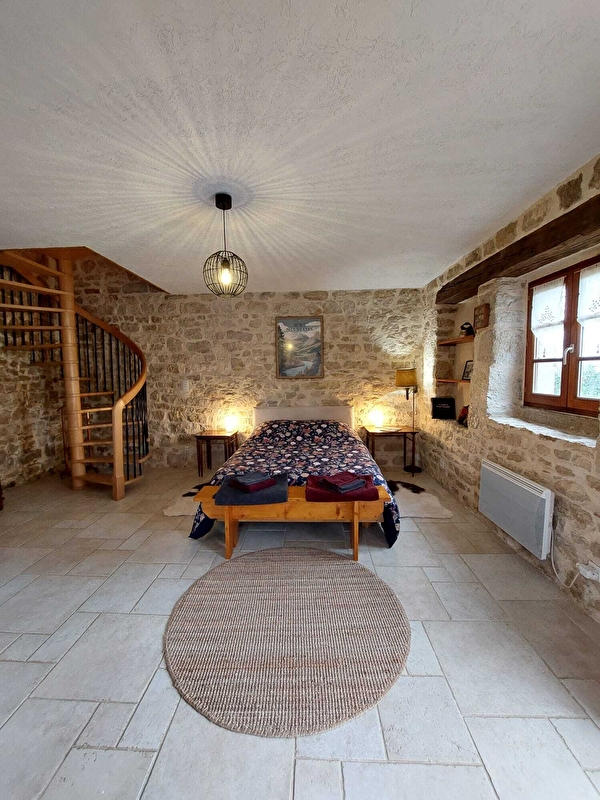 Vous vous sentirez "comme à la maison" dans notre gîte en pierres, entièrement équipé et doté d'une grande terrasse privative avec vue sur le pré, sans vis-à-vis.