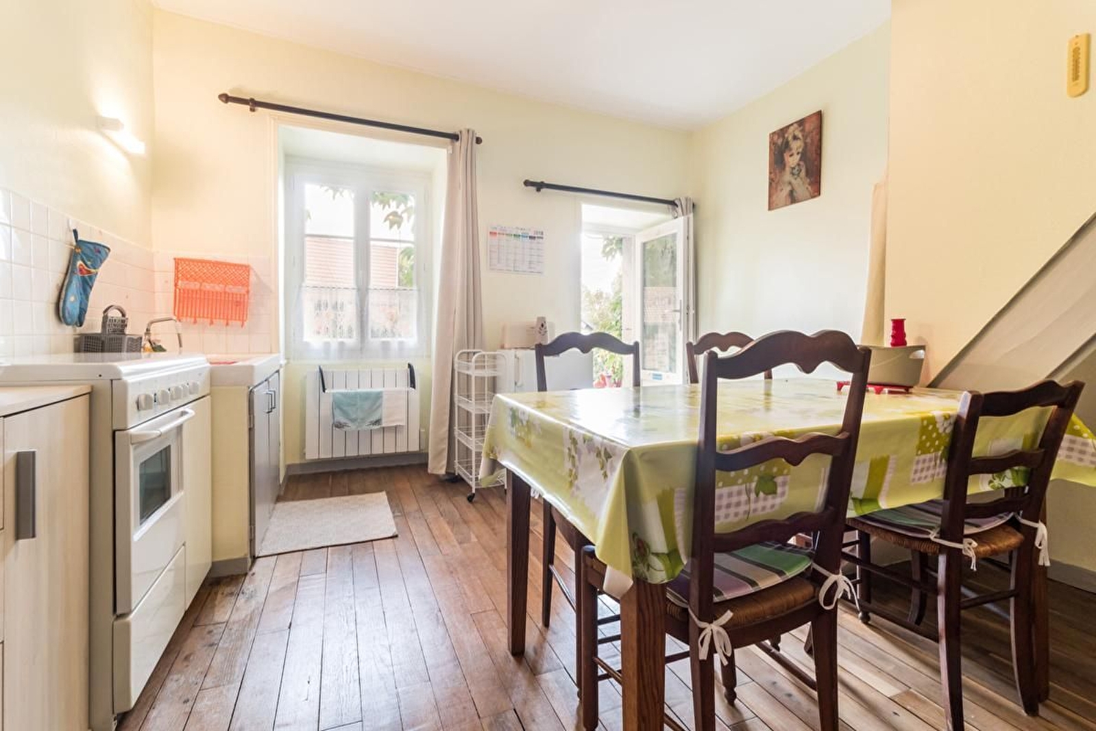 Dans un village tranquille de l'Auxois, ambiance campagnarde pour ce gîte situé au 1er étage d'un corps de ferme (logement inhabité au rez-de-chaussée et exploitation de la ferme sur l'arrière du gîte). Il se compose d'une cuisine fonctionnelle, d'un grand séjour avec salle à manger, coin salon et 2 lits gigognes, une chambre avec un lit 140 , une salle d'eau et des WC indépendants. Grange fermée pour les voitures et parking devant la maison Cour derrière le gîte avec salon de jardin et coin pelouse, à proximité de la ferme.