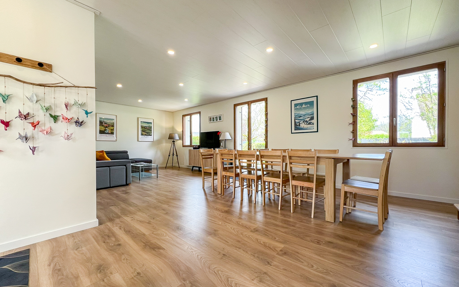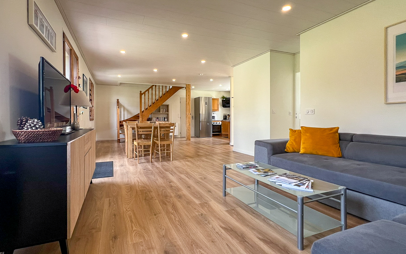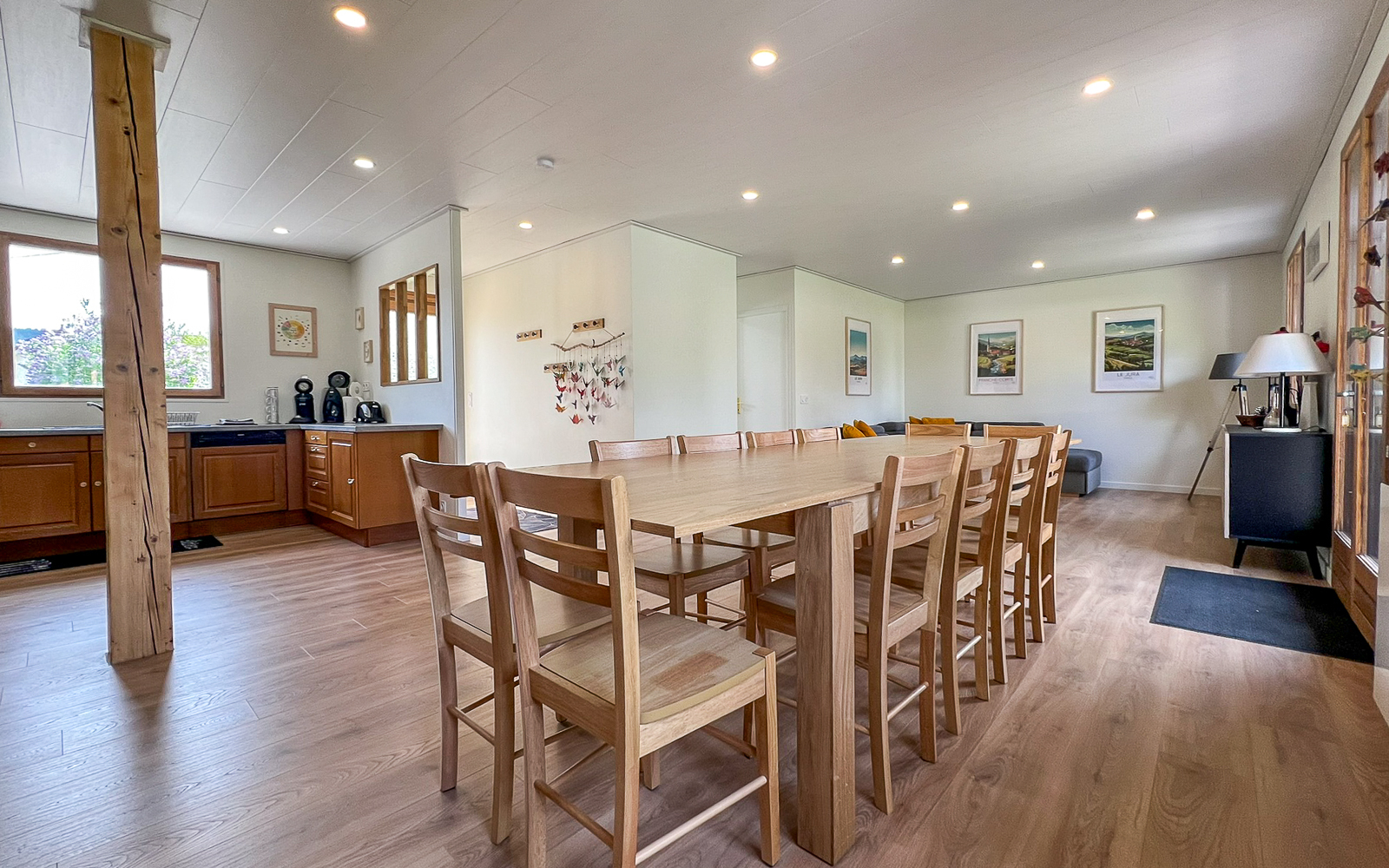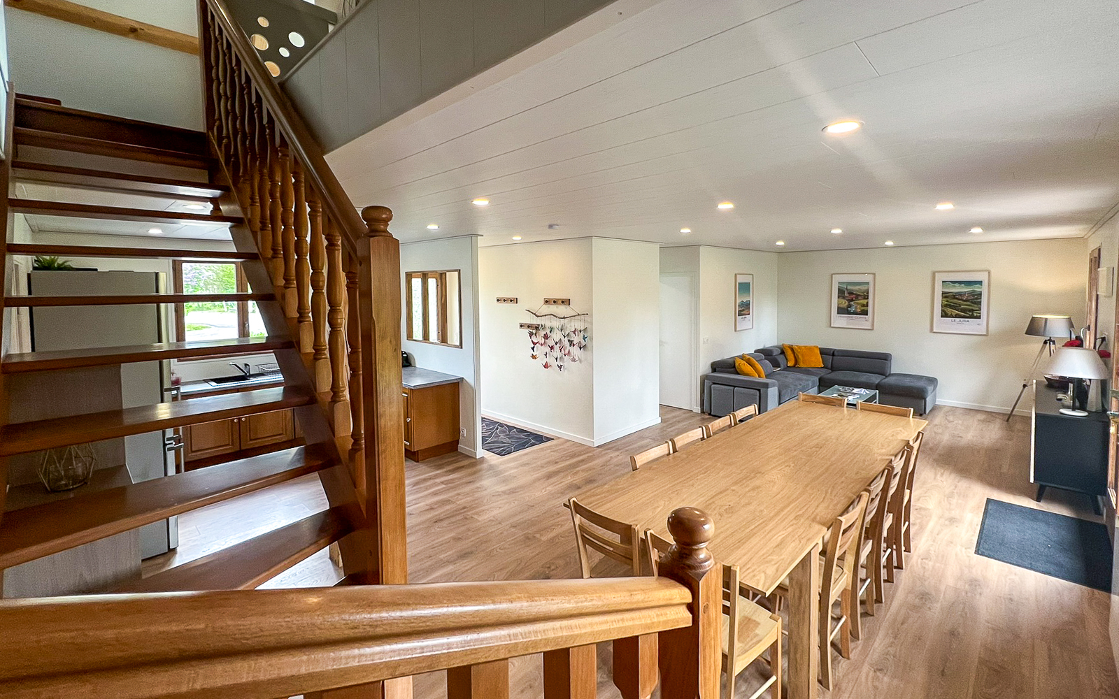 Grande maison rénovée pour 10 personnes (4 chambres) + grande pièce à vivre avec cuisine équipée ouverte. Idéal pour grande famille ou groupe.