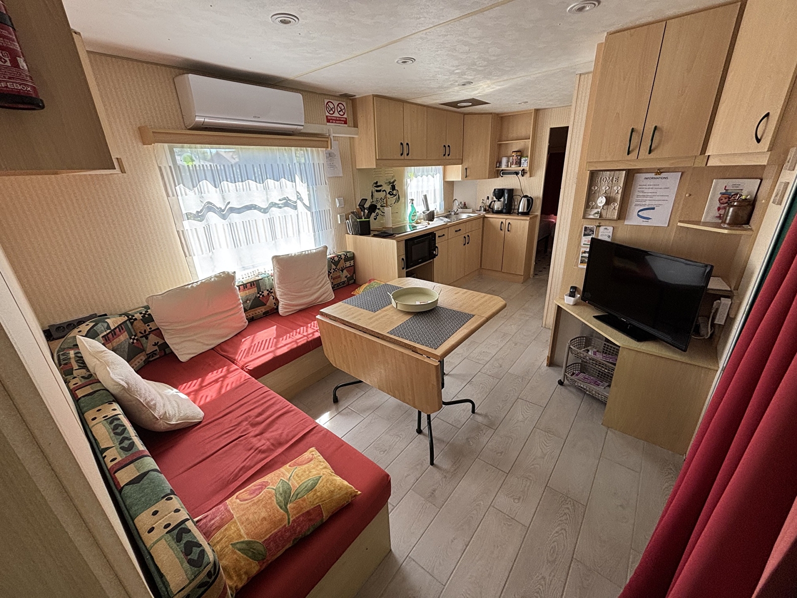 PAC air-air (climatisation réversible), lave-linge, lave-vaisselle, four, micro-ondes, téléviseur, wifi, étendoir à linge, table et fer à repasser.