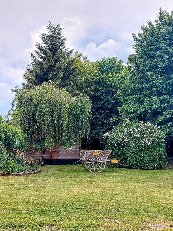 Ancien mobil-home entièrement réhabilité en charmant chalet bois, situé au cœur d’un parc forestier de 6 hectares, au calme et en pleine nature.