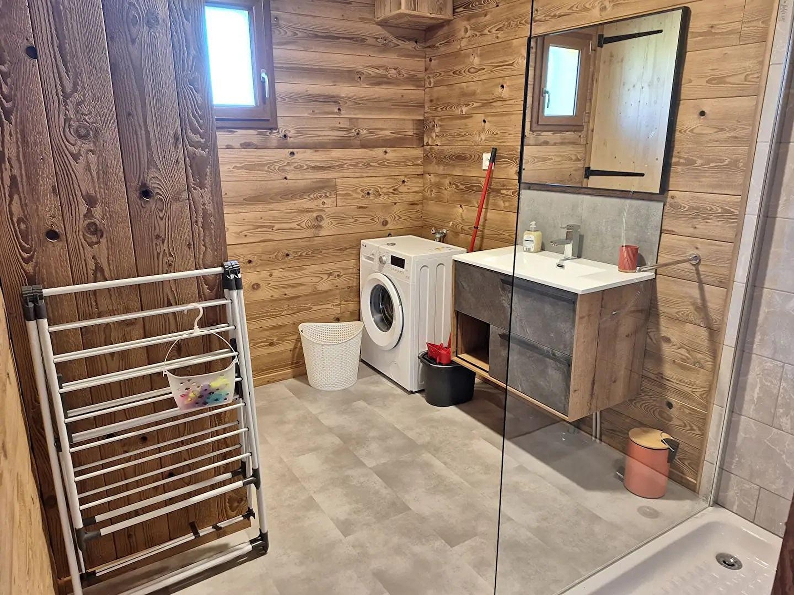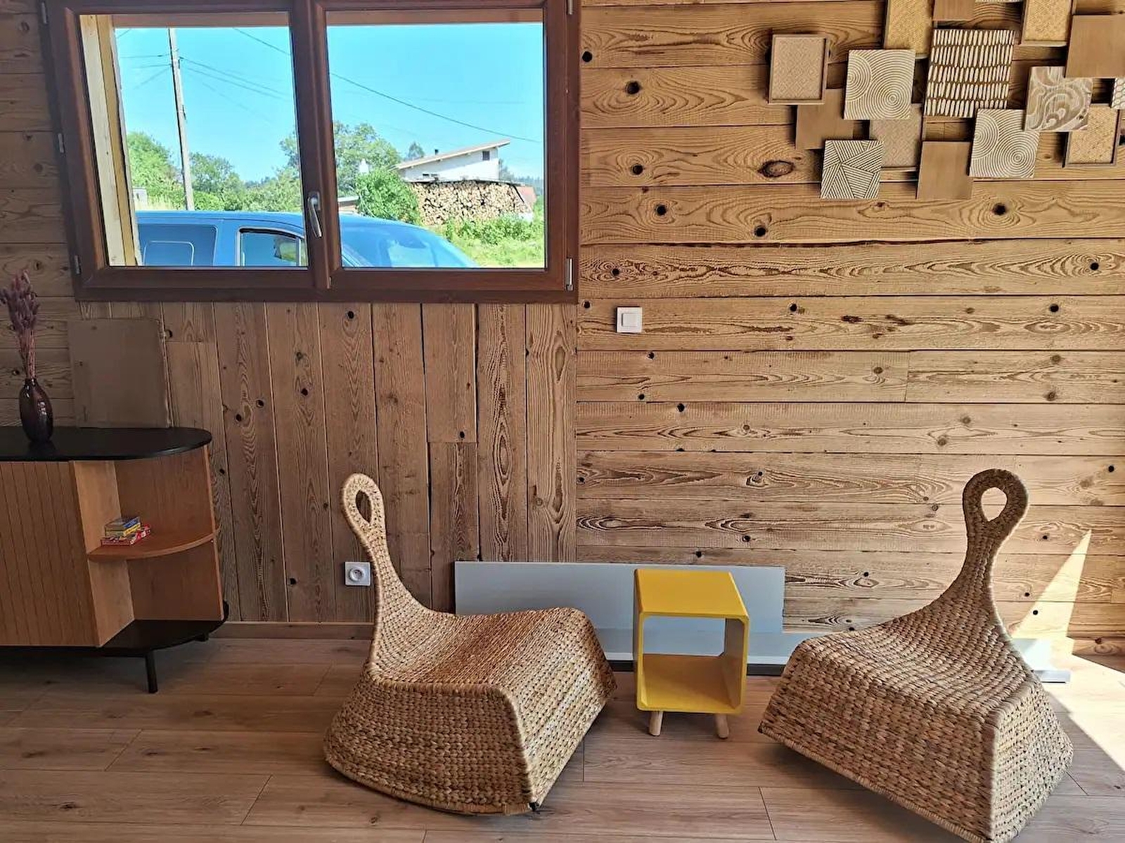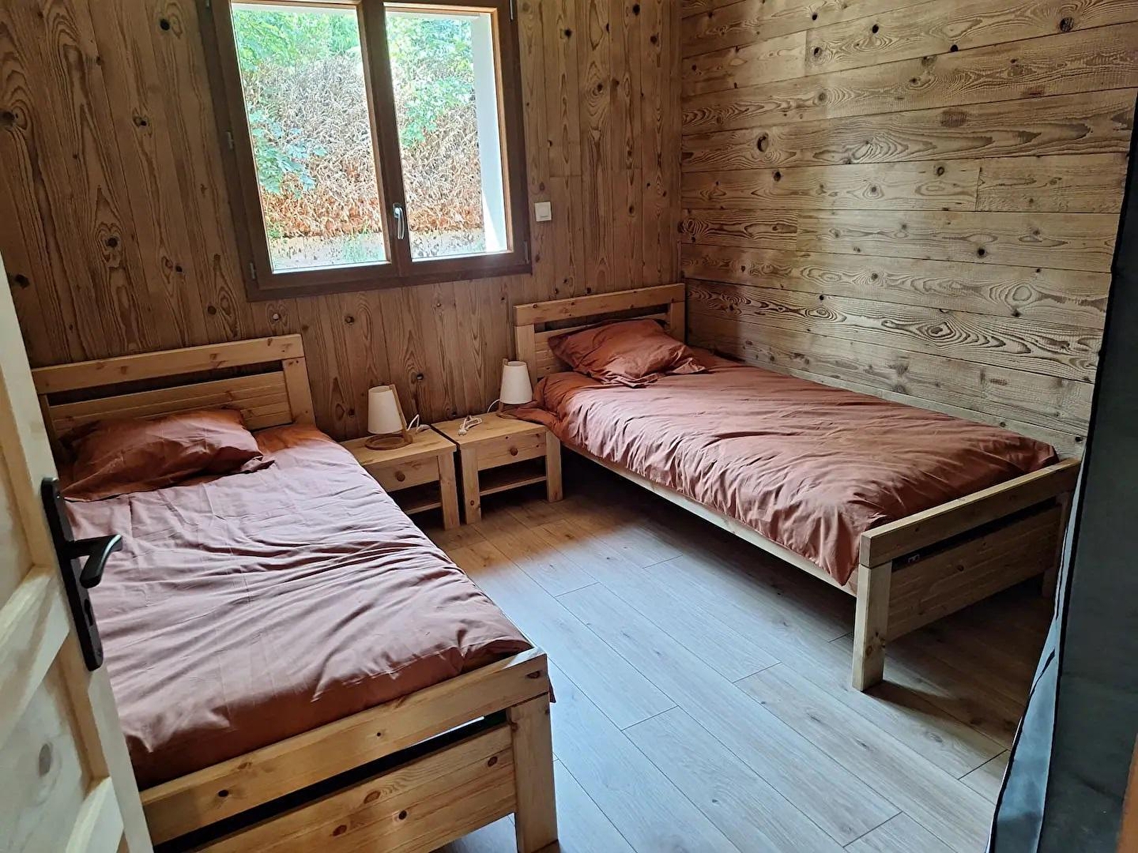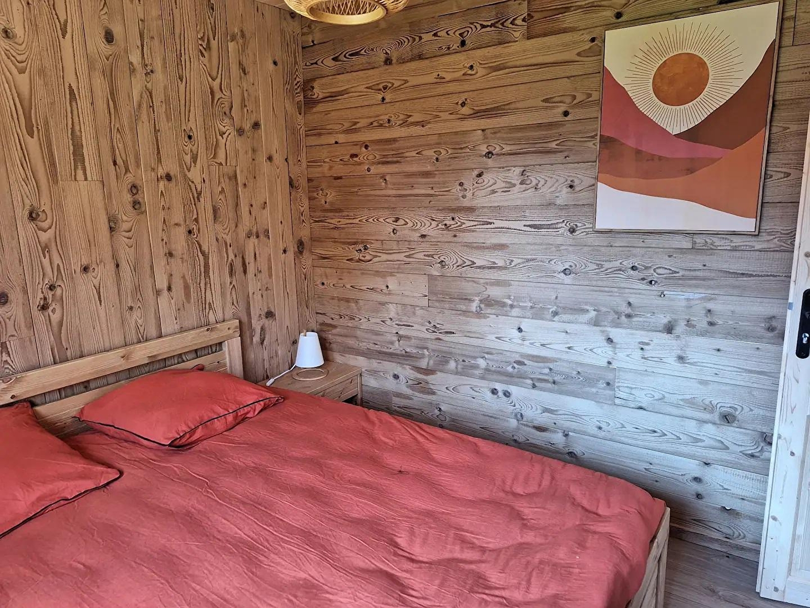 Cette maison neuve à ossature bois, de plain-pied, située à proximité du Pays des Lacs se compose d'une pièce de vie avec cuisine toute équipée, d'un coin salon avec TV, d'une chambre avec un lit double (160*200), d'une chambre avec 2 lits simples (90*200), d'un WC indépendant et d'une salle d'eau avec douche. Côté extérieur, vous pourrez profiter des beaux jours sur la terrasse, équipée avec salon de jardin, transats et barbecue. Note : Au moment du départ, le chalet doit être propre et rangé, le lave vaisselle doit être vidé, la vaisselle rangée, le gite doit impérativement être balayé avant le départ et le nettoyage du coin cuisine est impératif avec ou sans forfait ménage. Une caution de 30 euros pour le nettoyage du coin cuisine vous sera demandée. ATTENTION : les prises de courant ne sont pas aux normes pour la charge des véhicules électriques. Il est formellement interdit de s'en servir pour une telle utilisation. Risque de court circuit ou d'incendie. Une borne de recharge rapide est disponible à 200 m (nous contacter) Un autre gite est situé à côté de celui ci pour 4 personnes également. ils peuvent être réservable en commun. Parking privé sur place et volets dans les chambres.