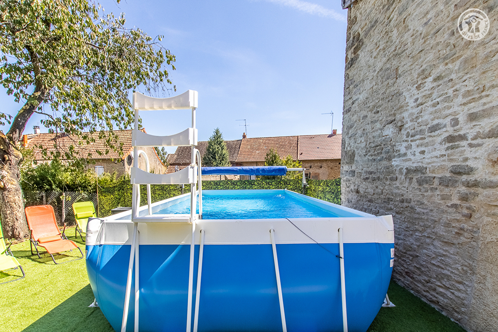 Composition : Maison de village comprenant 3 gîtes mitoyens (totale indépendance). Gîte sur 3 niveaux. Wifi (fibre). Chauffage électrique. Rdc : pièce de vie d'été, sde/wc. 1er étage : séjour-cuisine-salon, sdb (baignoire/douche). 2ème ét. 4 chambres (2 comprenant 2 lits 1 p. 90x200cm jumelables en lit 2 p. 180x200cm / lit 2 p. 160x200cm / 2 lits 1 p. 90x200cm), Wc indépendant. Terrasse gravier + terrain clos (cour + jardin) + local vélo + parking privés. Piscine hors-sol chauffée (3x5m). Commodités 4 km. Gîte labellisé "Vignobles & Découvertes".