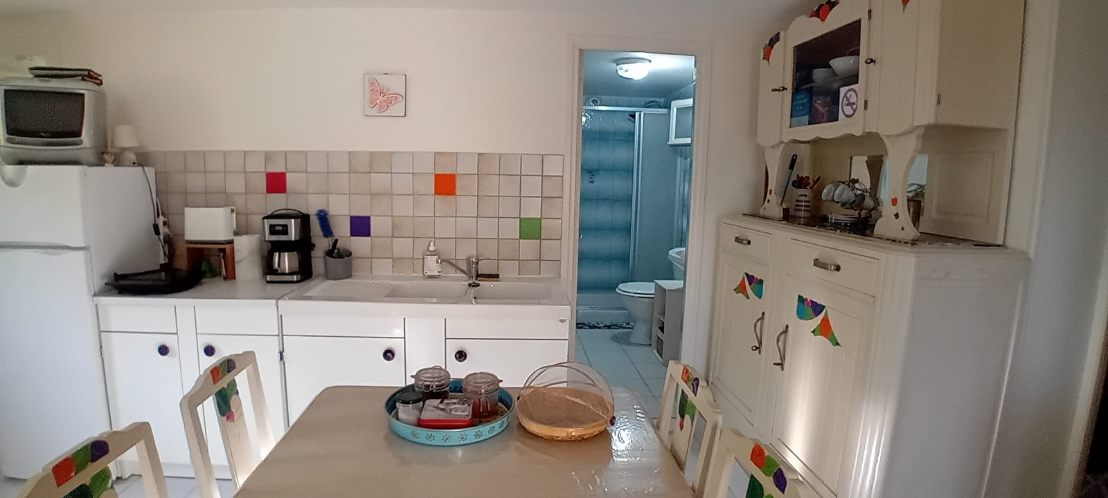 F1 de 34 m² proche de la sortie n°25 A6 de l’A6, situé au rez-de-chaussée d'une maison particulière dans un quartier calme, avec accès indépendant et parking gratuit.