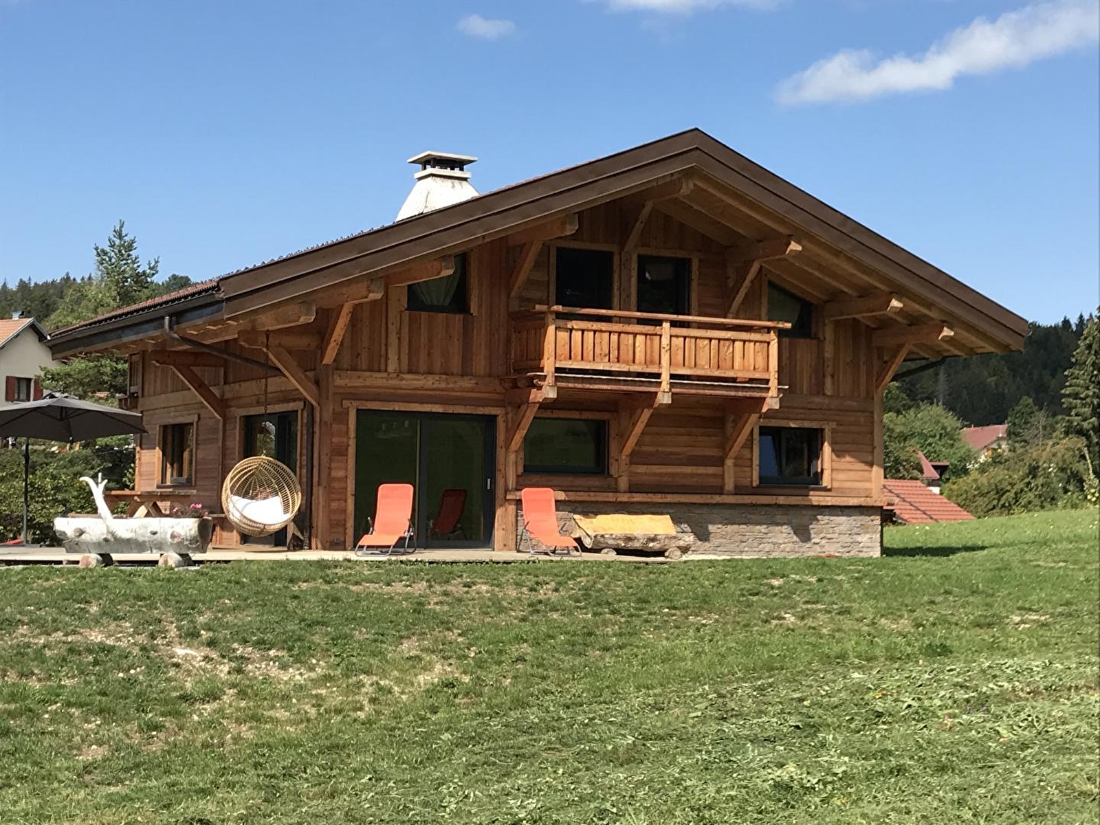 Idéalement situé au coeur du Haut Jura, venez découvrir ce splendide chalet entièrement neuf situé à quelques pas des pistes de ski. Au rez-de-chaussée, garage pouvant accueillir 2 voitures. Hall d'entrée avec rangements, lave linge, sèche linge, et accès au sauna. Douche et wc indépendants. Au premier étage, magnifique pièce à vivre composée d'une cuisine équipée et d'un espace salon avec chaine hifi et télévision écran plat. Wc indépendants. Suite parentale avec un lit de 180x200cm, douche à l'italienne et dressing, une salle d'eau et wc. Au deuxième étage, deux chambres avec chacune un lit de 160x200cm et accès au balcon qui donne sur l'arrière du chalet. Une troisième chambre avec 3 lits de 90x200cm, et également accès sur un balcon donnant quant à lui sur l'avant du chalet, une salle d'eau et wc. Côté extérieurs, grande terrasse en bois de 60m² offrant une vue imprenable sur la nature environnante. Elle est équipée de salon de jardin, parasol, chaises longues, et barbecue pour la belle saison. Vaste terrain attenant, non clos pour ravir petits et grands. N'attendez plus pour réserver ! (courts séjours possibles, contacter le propriétaire).