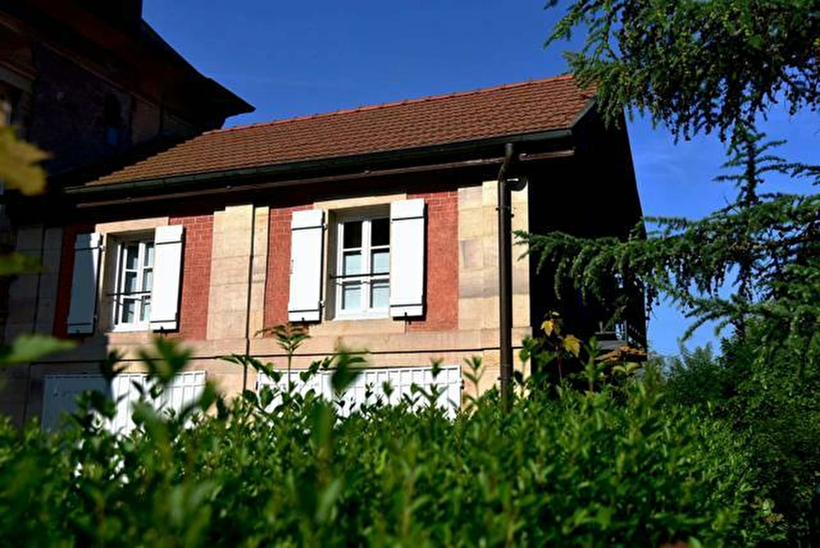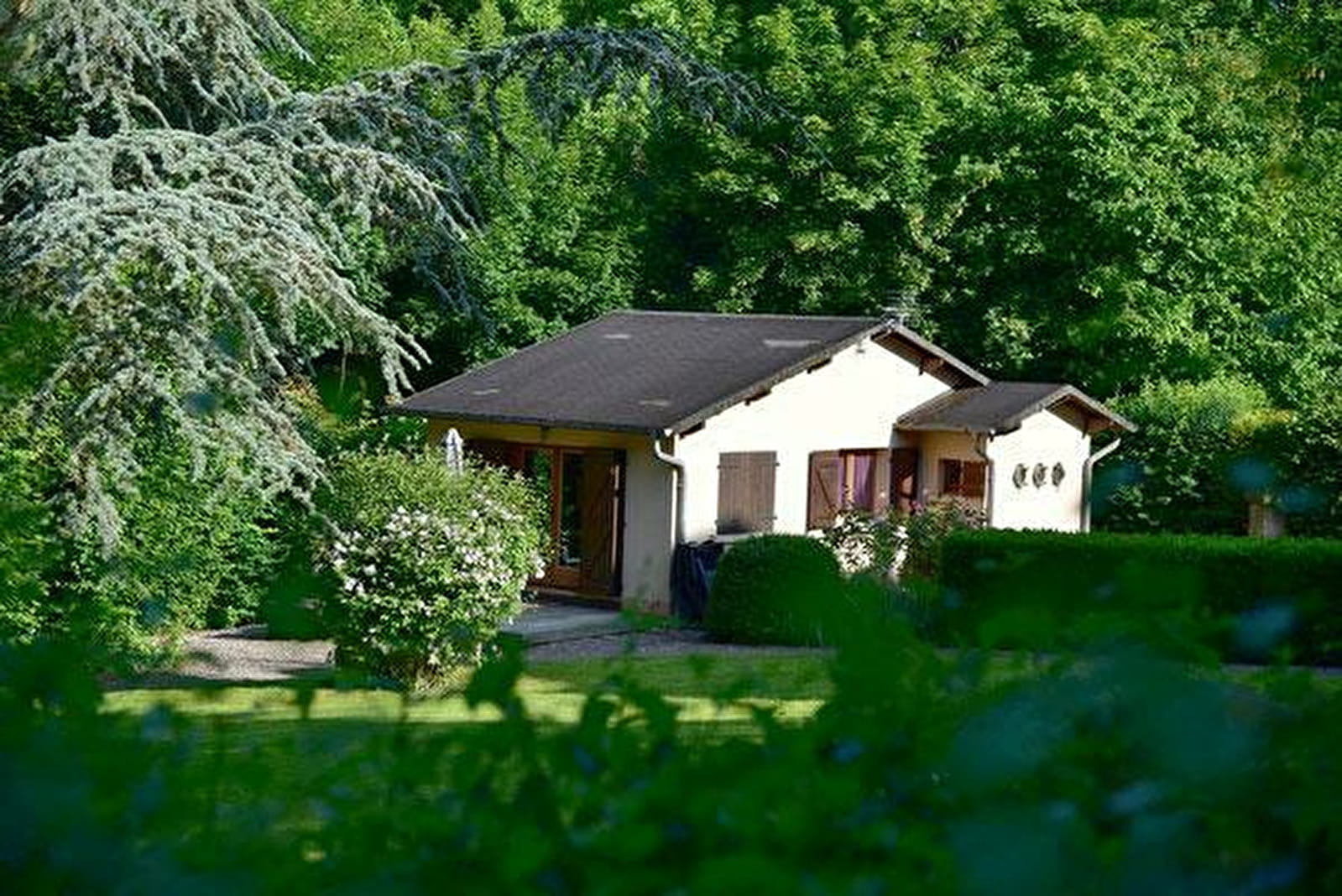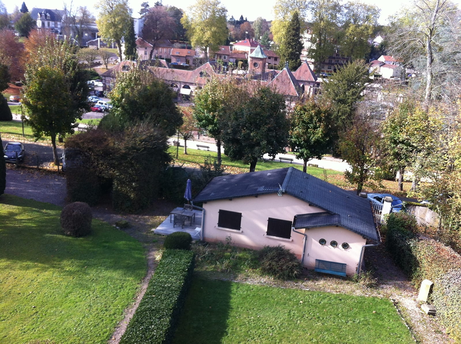Agréable chalet au pied des thermes dans le parc de la Villa des Platanes. Confort, calme.