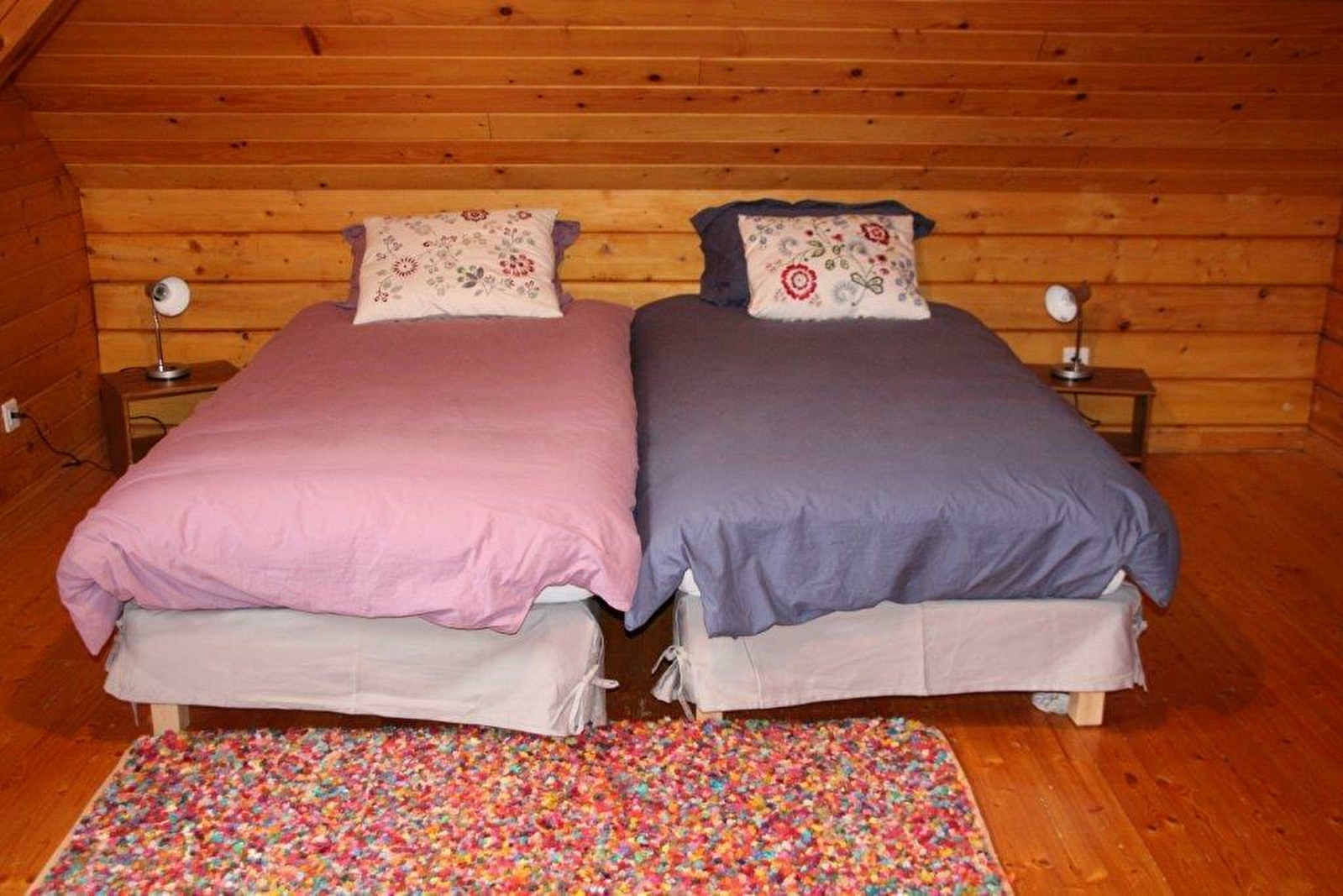 A l'étage : 1 chambre avec 3 lits simples, un coin mezzanine avec canapé + TV.