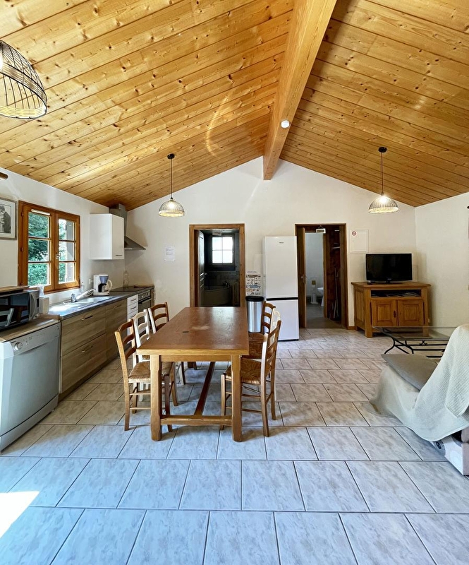 Philippe et Sandrine vous accueillent pour un séjour d'exception dans un environnement chaleureux et convivial. Venez profiter de ce gîte de plain pied se composant d'une pièce à vivre avec cuisine, salle à manger et salon (canapé convertible 2 pl, dvd-usb, chaine hifi), 2 chambres avec chacune 1 lit 2pl et 1 lit 1pl superposé. Salle de bain (baignoire d'angle et douche hydro-massante), wc indépendant. Le gîte dispose d'une terrasse privative avec salon de jardin et barbecue, entourée par un vaste terrain en commun avec 2 autres gîtes. Vous pourrez profiter de la balançoire, du terrain de pétanque ainsi que de l'espace détente : piscine (uniquement en saison estival, en commun et soumise à horaires), chalet sauna, bain nordique ( en commun et soumis à horaires). Les gîtes peuvent être loués ensemble en cas de regroupement familiale. Animaux acceptés sous conditions : se renseigner. Gîte en RDC permettant un accès aux personnes à mobilité réduite. Lits faits à l'arrivée. A découvrir absolument www.giteslescherubins.com