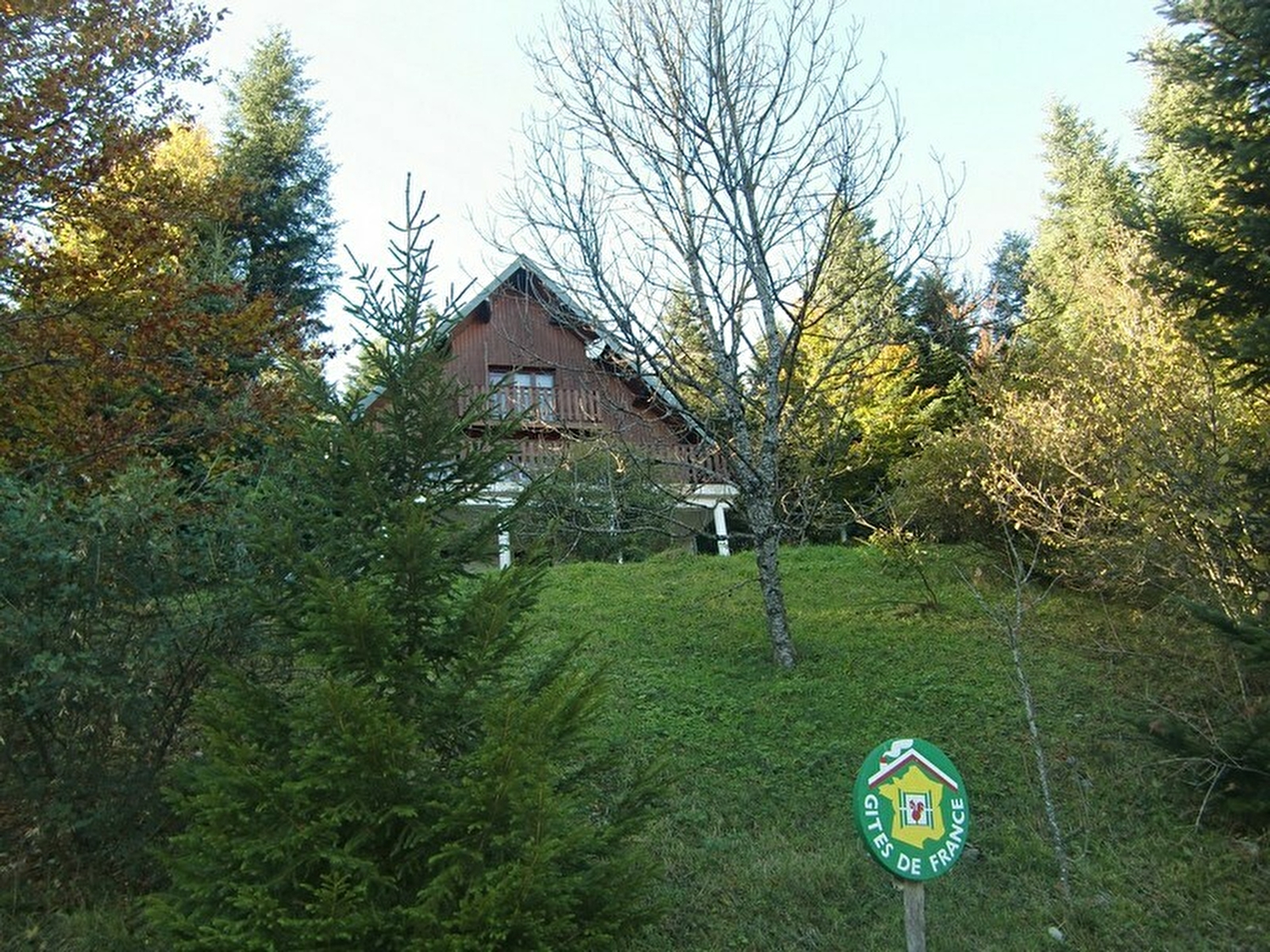 Dans le parc naturel régional du Haut Jura, Chalet indépendant situé en lisière de forêt, sur les hauteurs du village offrant une superbe vue sur la combe. Avec au 1er étage: vaste séjour-salon avec poêle à bois (tas de bûches = 10 euros) cuisine américaine toute équipée, salle d'eau. Au 2ème étage: ch1: 1 lit 2 pl, 1 lit 1 pl, ch2: 1 lit 2 pl, 1 lit 1 pl, ch3: 1 lit 2 pl, 1 lit 1 pl, salle de bains. Balcon-terrasse de 35 m2 avec vue panoramique, transats et barbecue. Chauffage électrique et bois. Charges non comprises. A disposition : lit parapluie, chaise bébé, services raclette, fondue. Par fort enneigement, le stationnement se fait au début du chemin pentu de la propriété ou dans le village à 200 mètres. Piscine extérieure à 2 kms. Départ des pistes de randonnées pédestre & ski de fond sur place devant le chalet.