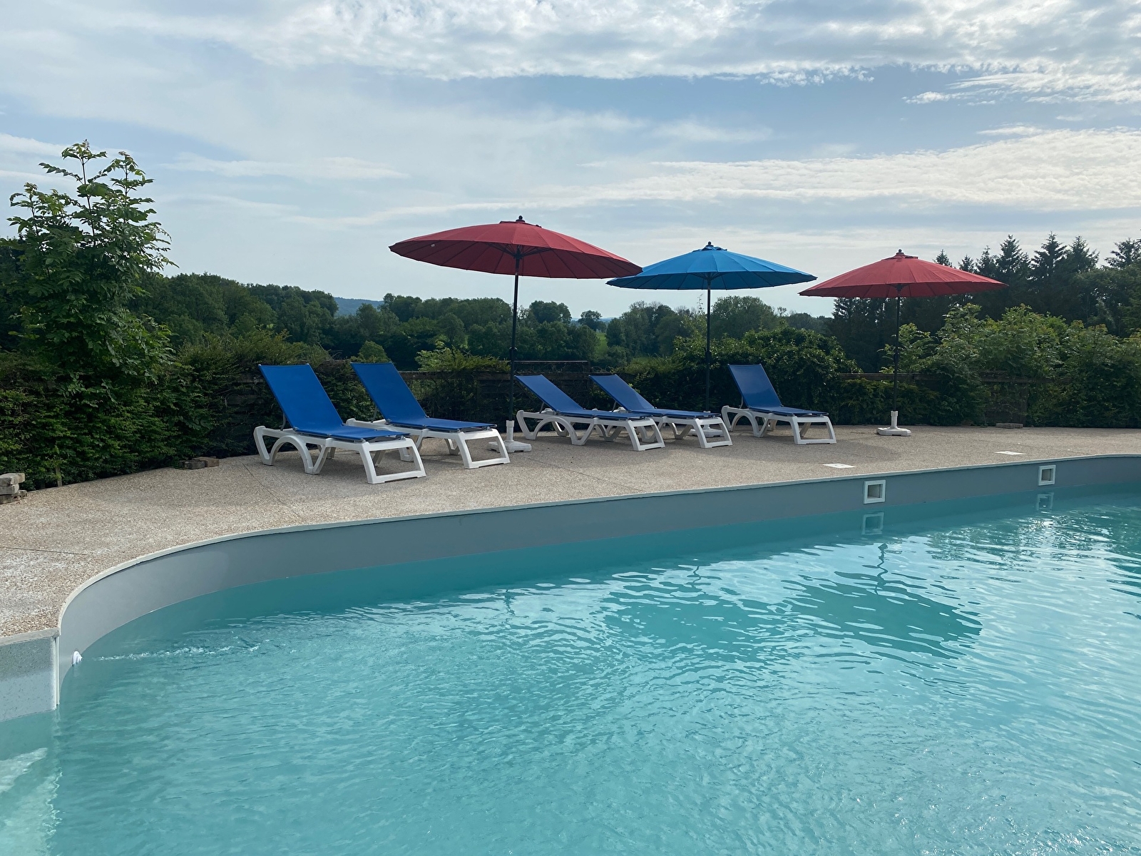 Chalet indépendant à proximité d'un autre gîte. Au rez de chaussée: coin-cuisine, salon-séjour, poêle à bois, salle de bains, WC indépendant, lingerie, ch1: 1 lit 2 pl. A l'étage: ch2: 2 lits 1 pl, ch3: 2 lits 1 pl, grand terrain attenant avec piscine privée clôturée chauffée l'été, salon de jardin, parking, barbecue, chauffage électrique et bois. Accès WIFI. Sur place, vous trouverez un espace bien être privatif avec hammam, bain à remous et sauna en option, une pizzeria à emporter (avril à septembre).