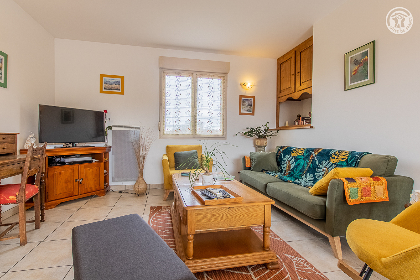 Composition : Maison individuelle de plain-pied. Wifi. Chauffage électrique + poêle à granulés bois. Séjour-cuisine-salon, 3 chambres (1 lit 2 p. 140x190cm dans chacune), salle de bain (baignoire d'angle), Wc indépendants, salle d'eau/buanderie (douche+wc). 1 VTC homme, 1 VTC femme avec porte-enfant et 2 VTT enfants sur demande. Terrasse abritée + terrain + abri voitures + parking privés. Commodités 1 km. Supermarché 2 km.