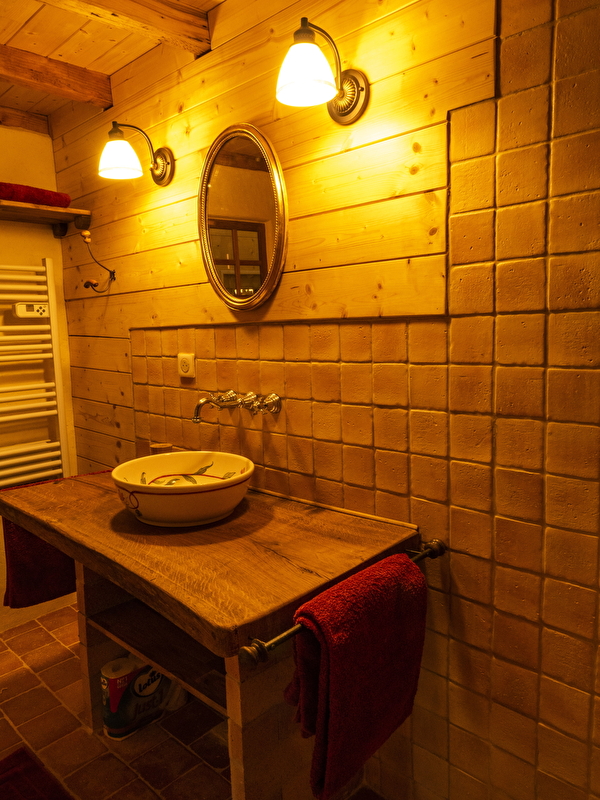 La maisonnée comporte une grande pièce à vivre où vous trouverez une cuisine confortablement aménagée ainsi qu’un salon propice à la lecture et au repos. La chambre entièrement boisée est meublée d’un lit double de 160 cm et comprend une salle de bain avec douche à l’italienne. Le linge de lit et de toilette est fourni.
