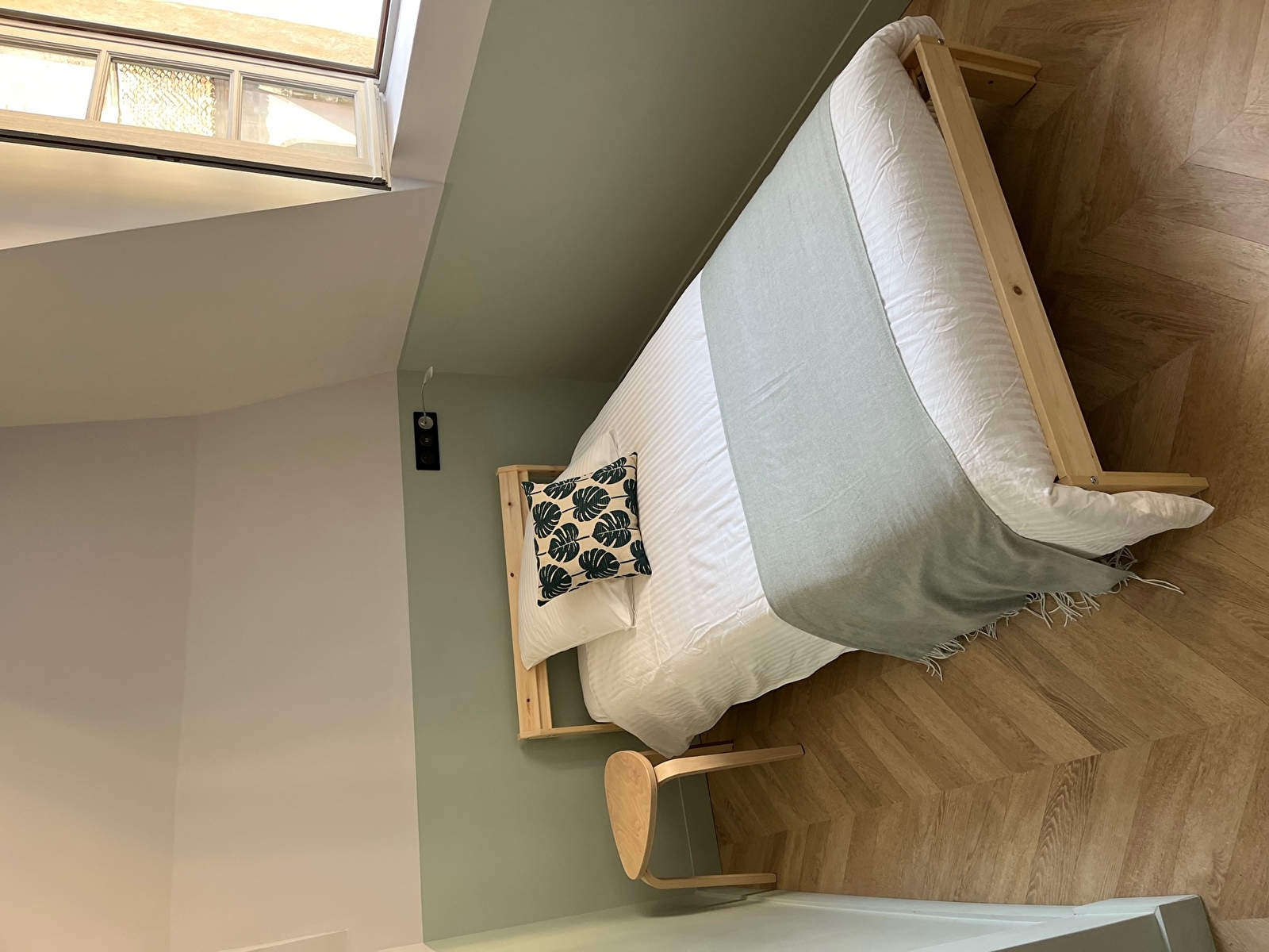 Le logement se compose de 4 niveaux : salon au RDC, cuisine au 1er étage, chambre avec lit double et SDB au 2ème étage et dortoir avec 2 lits simples et un lit gigogne au 3ème.