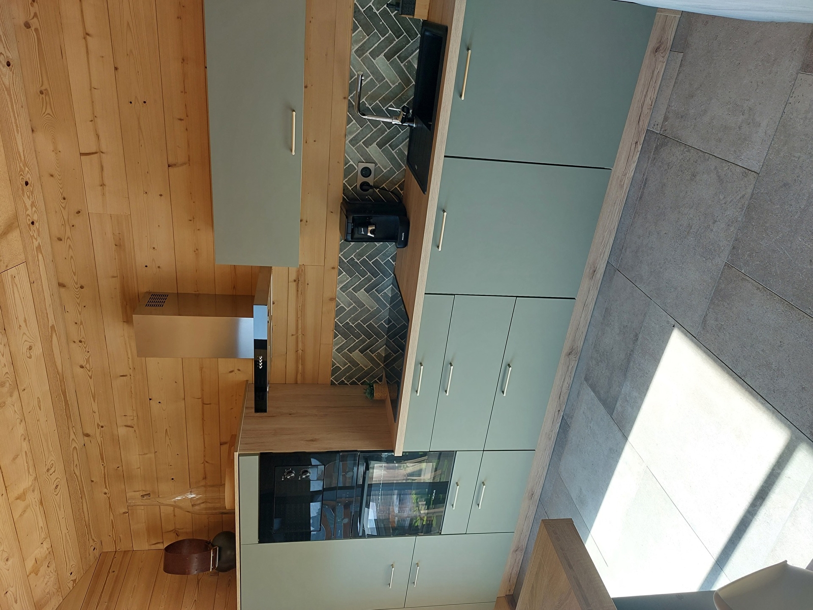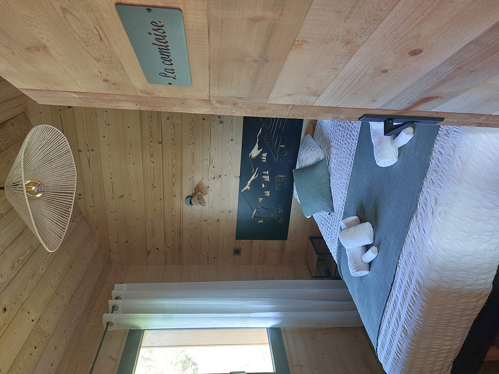 Notre gîte allie avec élégance le charme du bois brossé à la praticité moderne, offrant un espace soigneusement équipé où chaque détail est pensé pour votre bien-être.