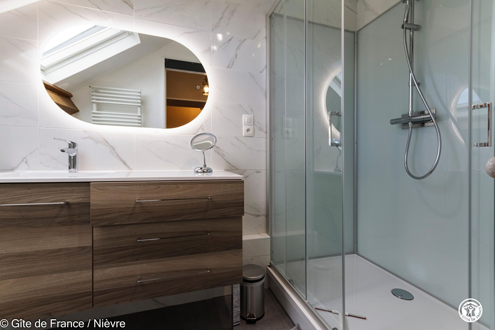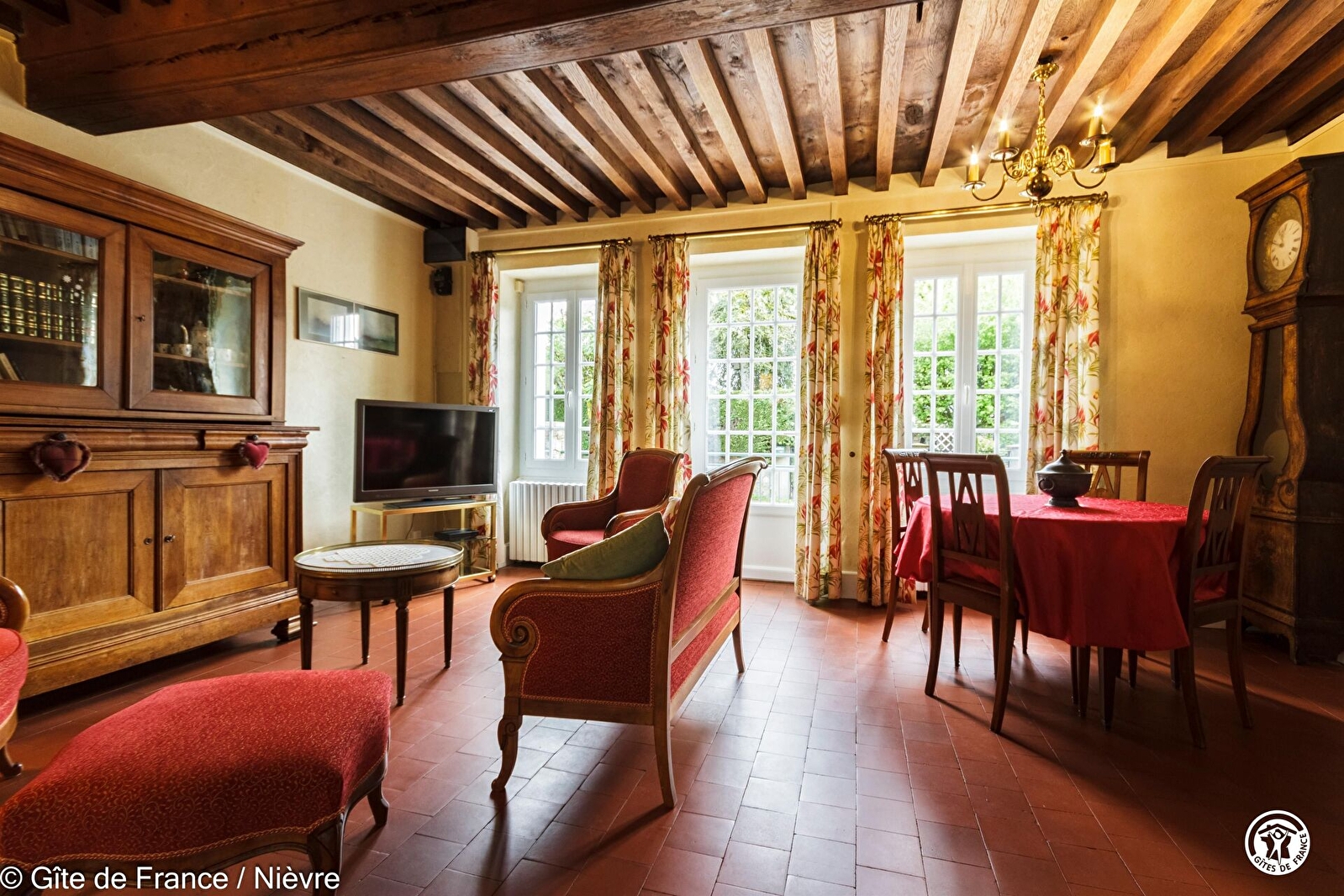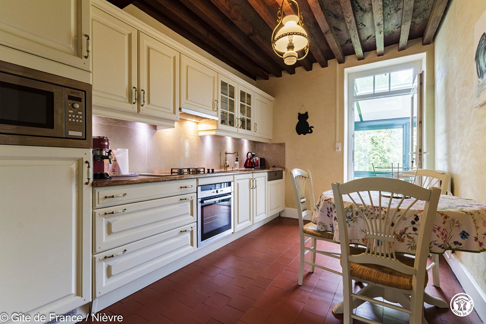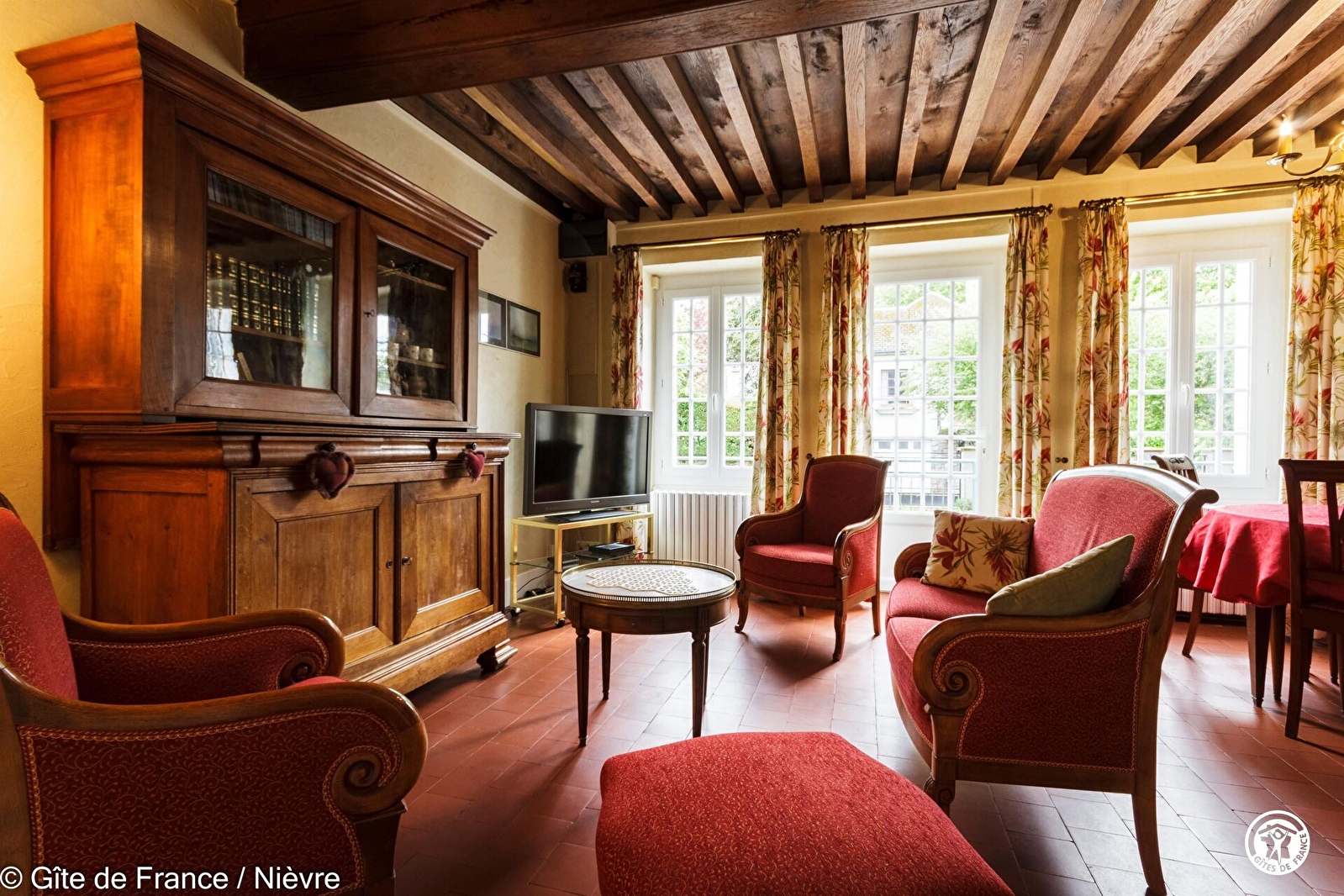 Cette maison individuelle avec terrasse, véranda et jardin clos se trouve à 200m des commerces d' Ouroux-en-Morvan. Accès à la maison via un escalier : entrée par la véranda donnant sur le jardin bien arboré; cuisine indépendante équipée et aménagée, pièce à vivre avec salon télé et espace repas, un wc indépendant, une chambre avec 1 lit 140x190; à l'étage : un wc indépendant, une salle d'eau avec douche grande dimension, une chambre avec 1 lit 140x190 et un bureau. Internet avec la fibre.