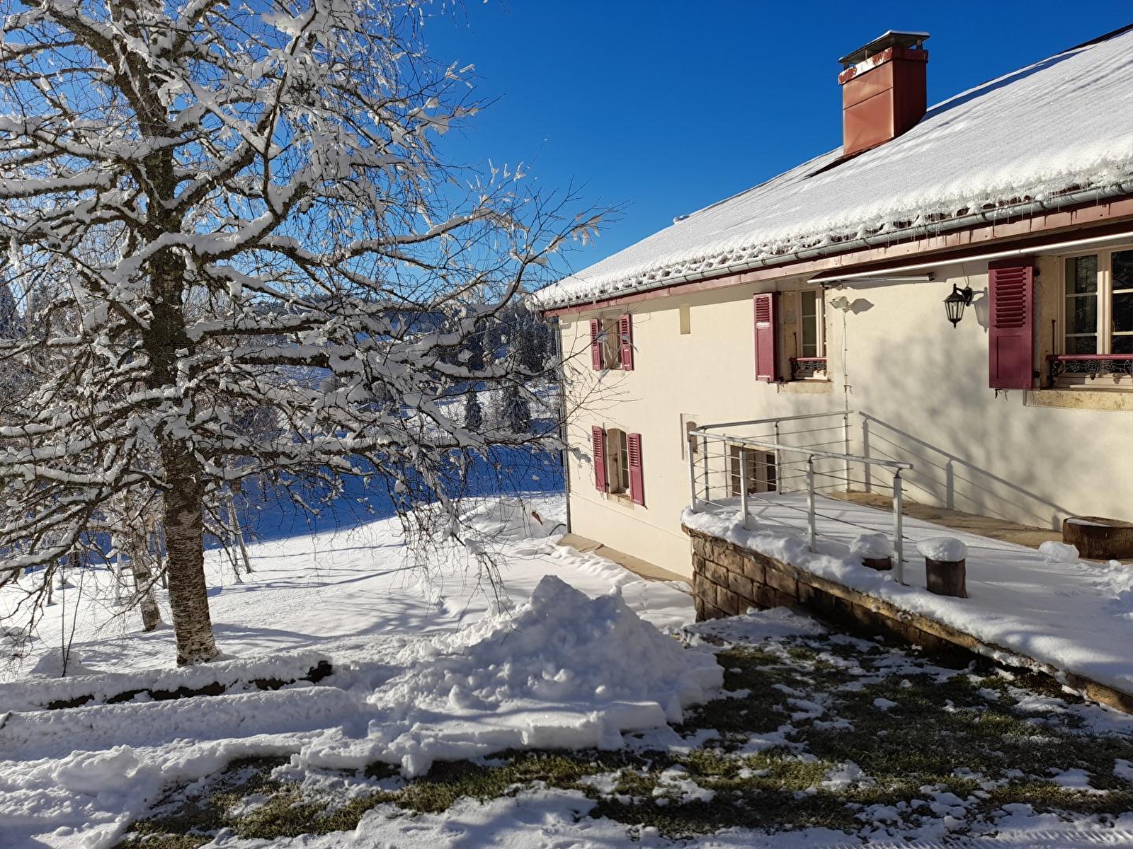 Logement entièrement rénové dans une partie d'une ancienne ferme Jurassienne. Situé en plein coeur de la nature, venez découvrir la passion des propriétaires : les courses de chiens de traineaux. Le gîte se compose d'un hall d'entrée, une pièce à vivre avec coin cuisine, salon et espace repas. Dans un grand couloir lumineux se trouvent 2 chambres en alcôve (une avec 2 lits 1 pl et l'autre avec 1 lit 2 pl), salle d'eau (douche à jets), wc indépendant. Grand espace extérieur avec vue sur la nature environnante, salon de jardin, barbecue, chaises longues. Lits faits à l'arrivée sur demande. Animaux acceptés sous conditions. Equipement bébé à la demande : lit, chaise haute, baignoire. Possibilité d'accueillir 2 personnes supplémentaires (couchage BZ)