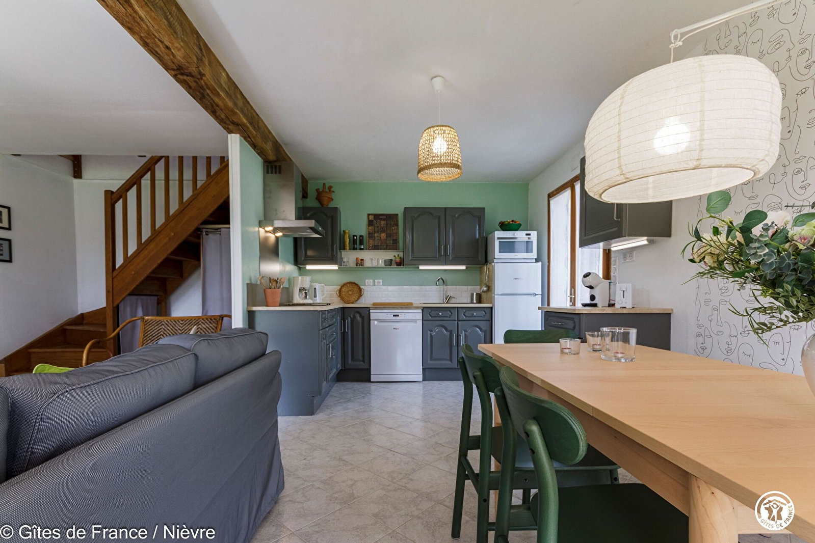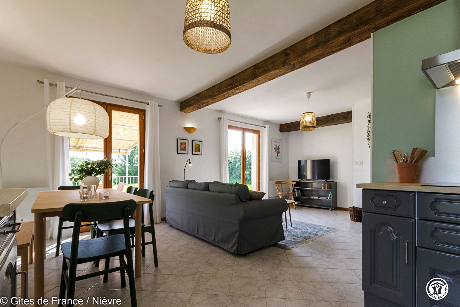 Gite calme situé au bout d’une impasse donnant sur un terrain privé de 2000m2 bénéficiant d'une très jolie vue dégagée et notamment sur une ferme fortifiée du 15éme siècle au milieu de 100hectares et 250 vaches charolaises. Situé à 4.5 km de Corbigny (gare pour Paris Bercy) disposant de tous les commerces. Aménagement neuf sur une extension de 1997 adossée à une ancienne grange (1846) dans laquelle vous trouverez une table de ping-pong. Un terrain de pétanque est également à votre disposition à 100 m au milieu d’un verger. Abri couvert pour 2 à 3 voitures et motos.