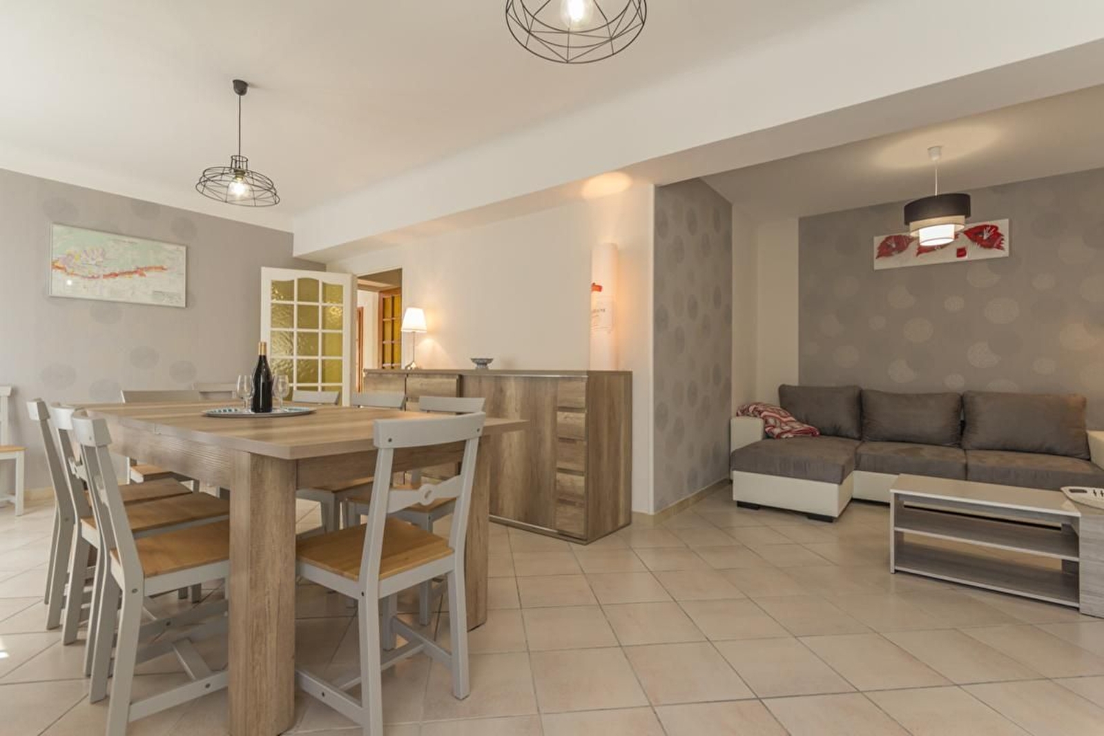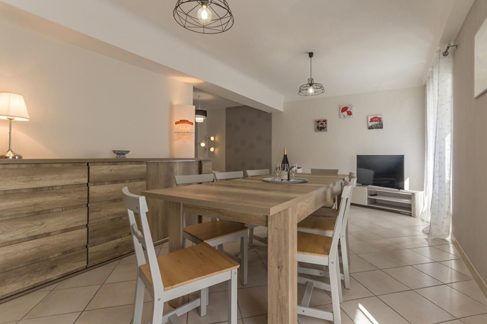 Rez-de-chaussée : grand séjour très lumineux avec salle à manger et salon (canapé convertible). Cuisine équipée. 2 chambres communicantes (1 lit 160 et 2 lits 80 jumelables) et dressing. Salle d'eau et WC séparé avec lave-mains. Buanderie. Pas de wifi.