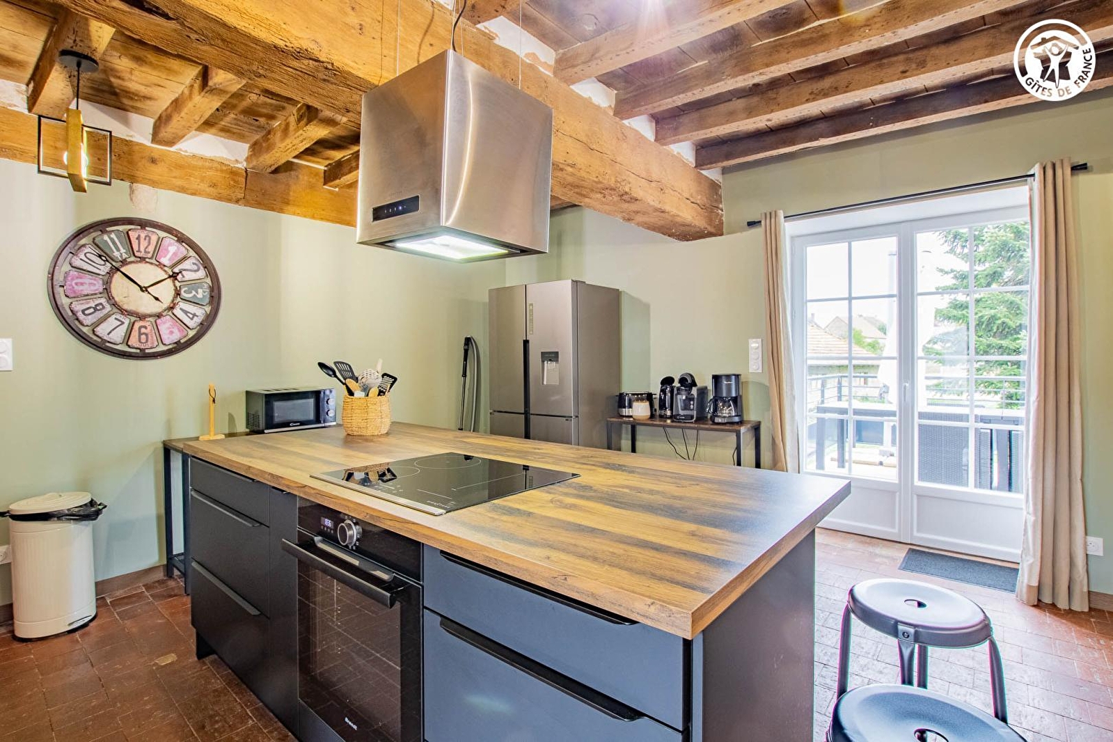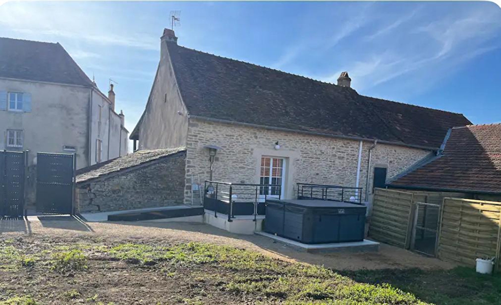 Ravissante authentique demeure de pays du XVIIIe soigneusement restaurée, dotée d'une "galerie mâconnaise" traditionnelle, abritant les écuries du propriétaire (à l'écart), nichée au calme en lisière de son "manège équestre" & d'une pâture accueillant ses chevaux en saison. En bordure de ruelle, à deux pas des vignes, au cœur d'un petit village typique & commerçant (église romane du XIe, pont en pierre à quatre arches du XVIIIe…), blotti sur les rives de la Guye au pied d'un vaste massif forestier sauvage doté d'une littérale "Mer de pierres" (curiosité géologique constituée de plusieurs clairières de blocs de granit de toutes tailles sur près d'un kilomètre). Apaisante douce campagne vallonnée alentours conjuguant magnifique bocage, étangs, bois & rivières, proposant divers "belvédères" panoramiques (jusqu'au Mont-Blanc par temps clair !). Spacieux gîte de très bon confort. Chaleureux cachet campagnard aux accents contemporains sublimé par les riches traces du bâti d'origine (tommettes, manteau de cheminée, poutres & plafonds, mur en pierres…) comme par d'insolites "lucarnes panoramiques" donnant sur les écuries & les chevaux ! Beaucoup de charme. Ultra cosy & douillet. Ambiance douce & raffinée. Terrasse exposée & ombragée dominant un terrain naturel comprenant spa extérieur 6 places & terrain de pétanque. Agréable vue dégagée.