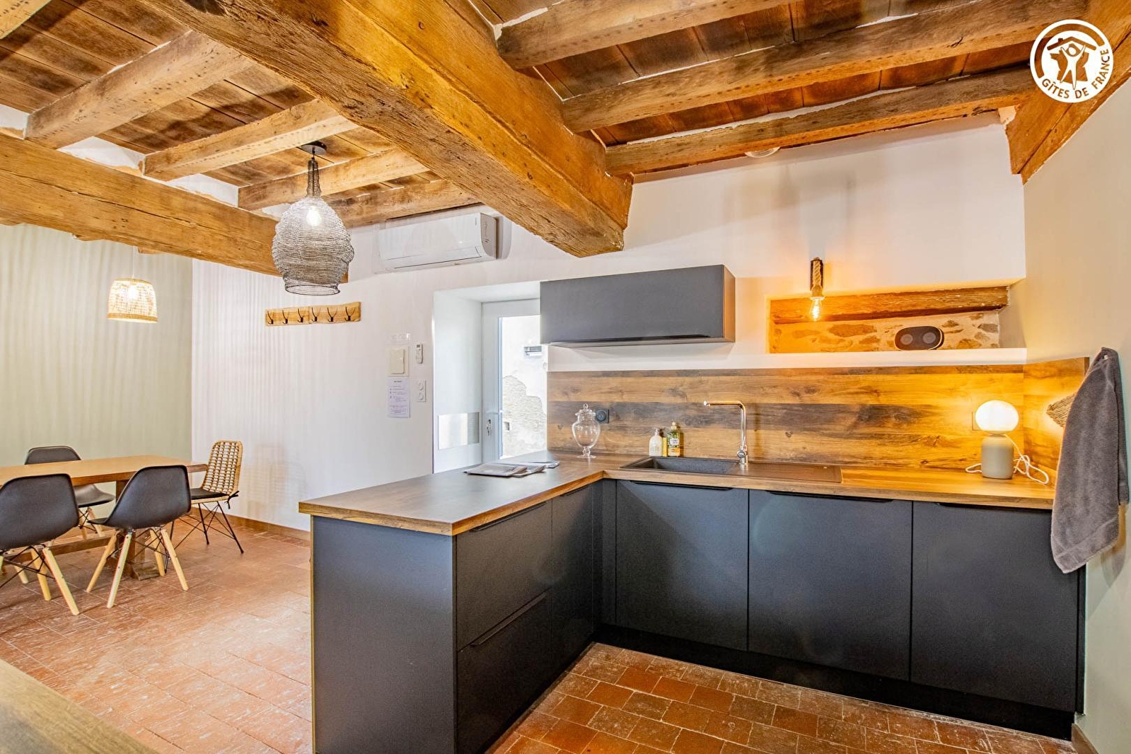 Composition : Maison comprenant écuries privées du propriétaire. Wifi (fibre). Chauffage PAC. Climatisation. 1er étage (accès plain-pied depuis parking) : cuisine-séjour, salon, 3 chambres avec TV (lit 2 p. 160x200cm / 2 x 2 lits 1 p. superposés 90x190cm / lit 2 p. 140x190cm), sdb (baignoire + douche), 2 Wcs indépendants. Rdc : 3 chambres avec TV dont 1 PMR (lit 2 p. 160x200cm / lit 2 p. 140x190cm / lit 2 p. 160x200cm), salle d‘eau PMR (douche), Wc indépendant PMR. Balconnet abrité + terrasse + spa extérieur 6 p. (payant "hors" juin à septembre) + terrain pétanque + terrain + local vélos + parking privés. Supérette 5 km. Supermarché 9 km.