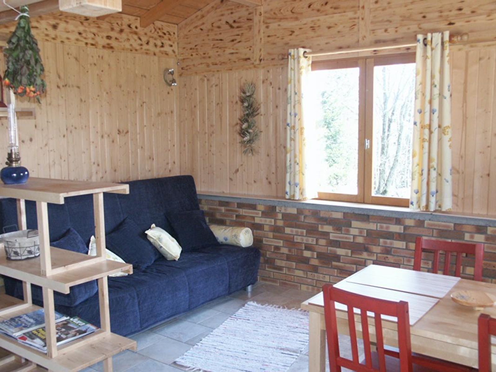 Chalet indépendant de plain-pied situé en pleine nature, au pied des pistes de skis de fond et au départ de nombreux circuits de randonnée. Coin-cuisine équipé, salon avec poêle-cheminée (bois fourni gratuitement), canapé convertible 2 pl. Une chambre avec un lit 2 pl. Salle d'eau et wc intégrés. Chauffage électrique d'appoint. Terrain attenant non clos, salon de jardin, barbecue. Garage pour motos et vélos. Pas de machine à laver l'hiver.Un seul animal autorisé.