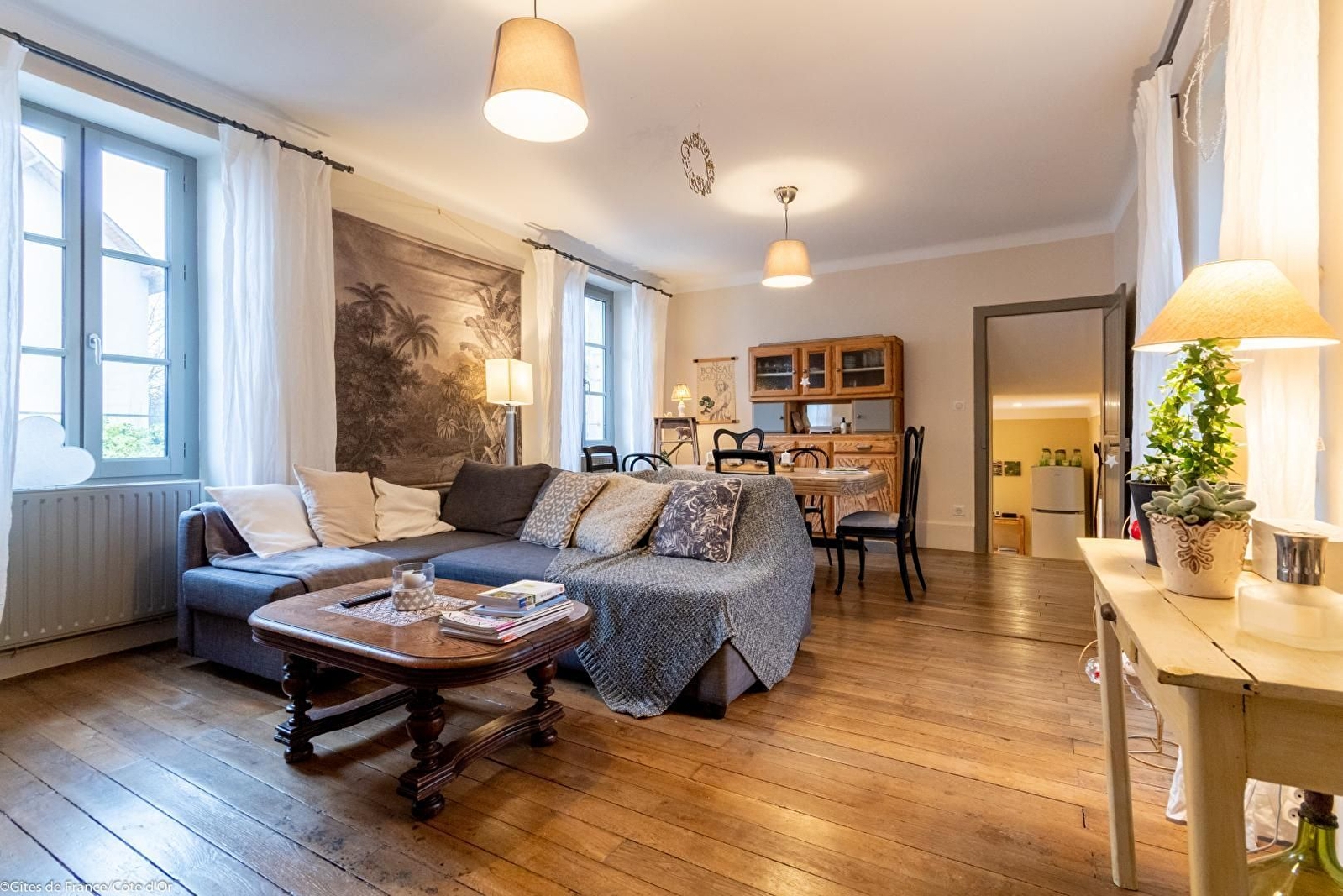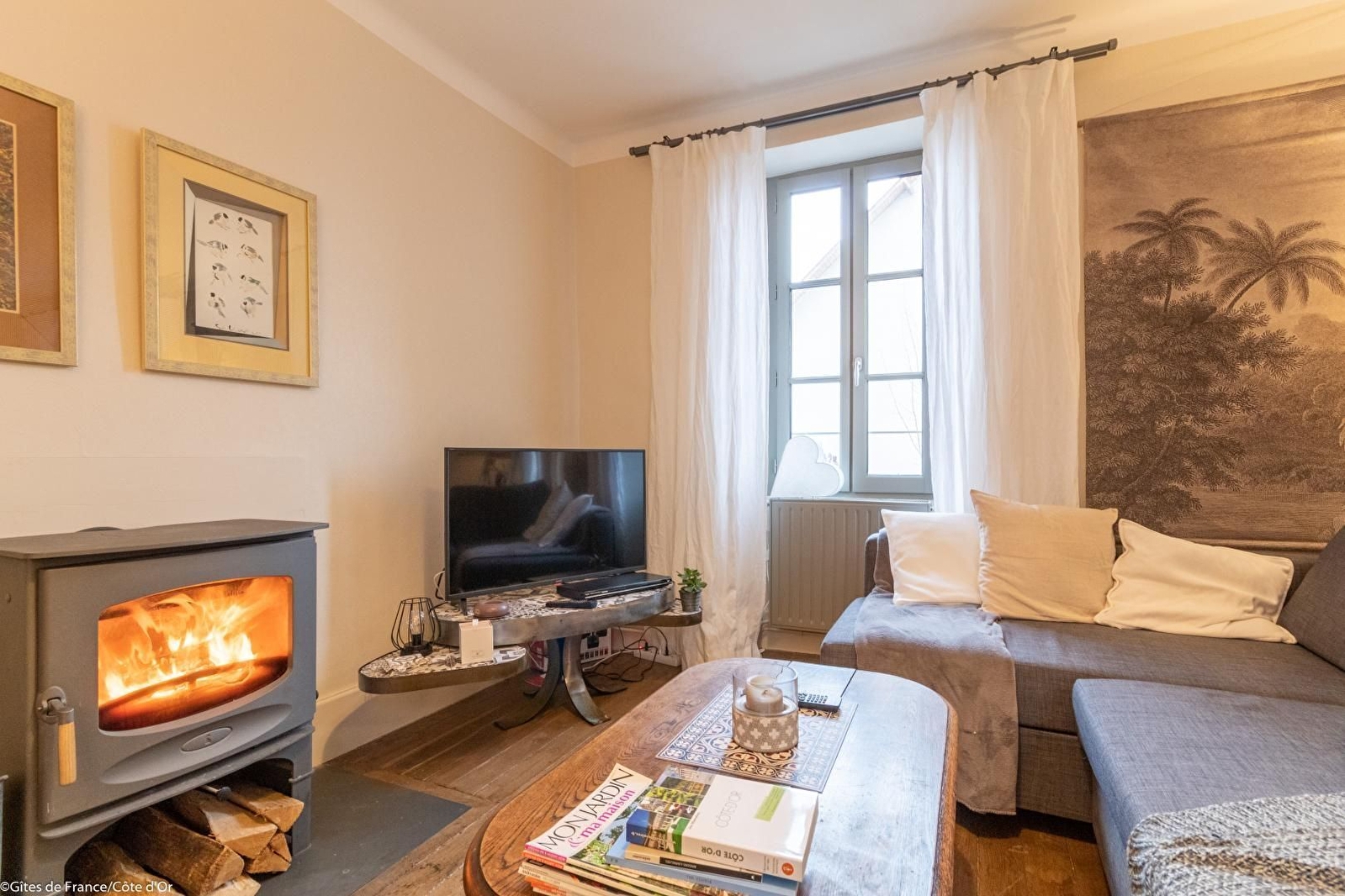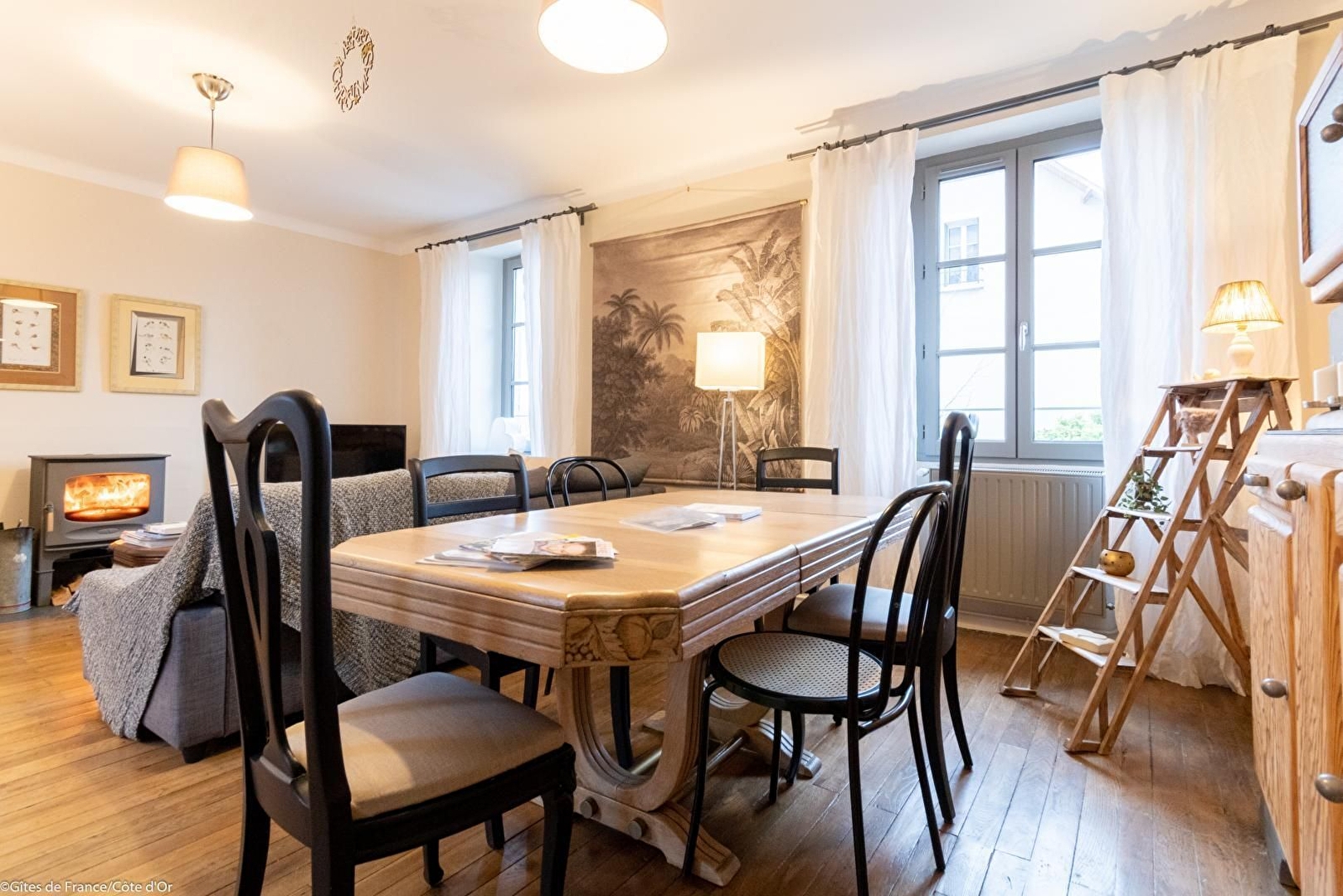 A 200 du centre de la cité médiévale de Semur en Auxois, belle maison ancienne du 19ème siècle entièrement rénovée pour offrir un gîte tout confort aux touristes de passage en terre bourguignonne. Rez-de-chaussée : entrée avec buanderie, cuisine toute équipée. Quelques marches pour accéder au salon et à la salle à manger avec poêle à bois. Salle d'eau avec douche à l'italienne et WC indépendant. Un bel escalier ancien dessert les chambres à l'étage : une chambre avec un lit 140 et une grande chambre avec lit 160 et balcon, communicante avec la 3 ème chambre qui dispose de 2 lits 90 jumelables. Chaise haute, lit parapluie. Machine à café "Nespresso.