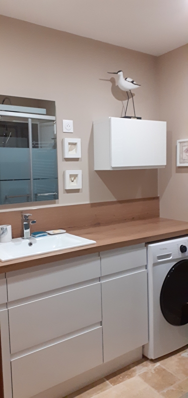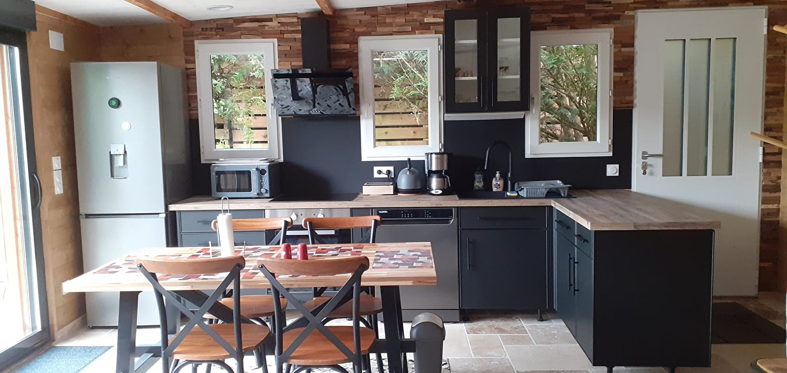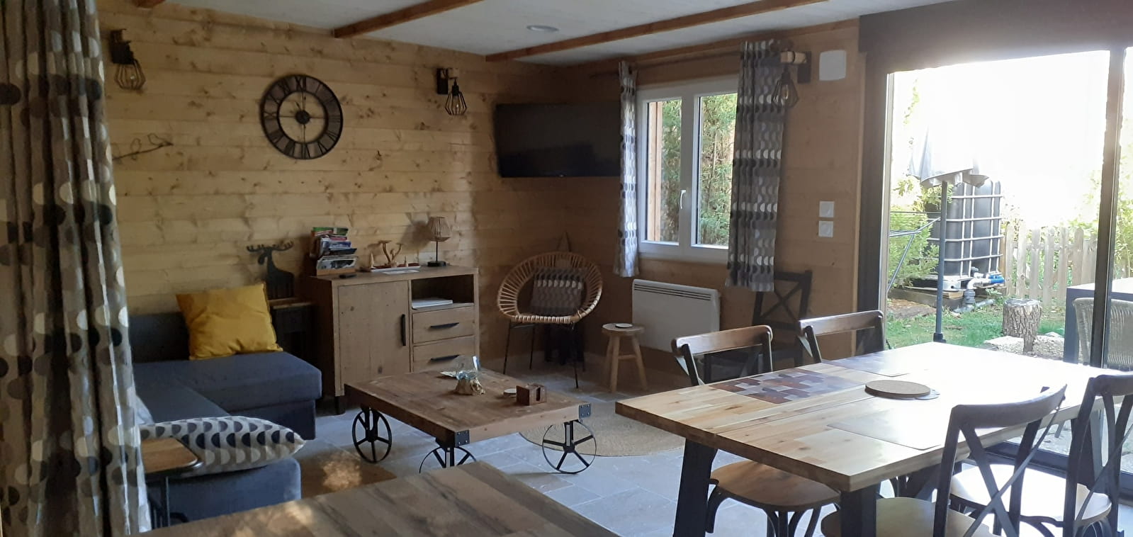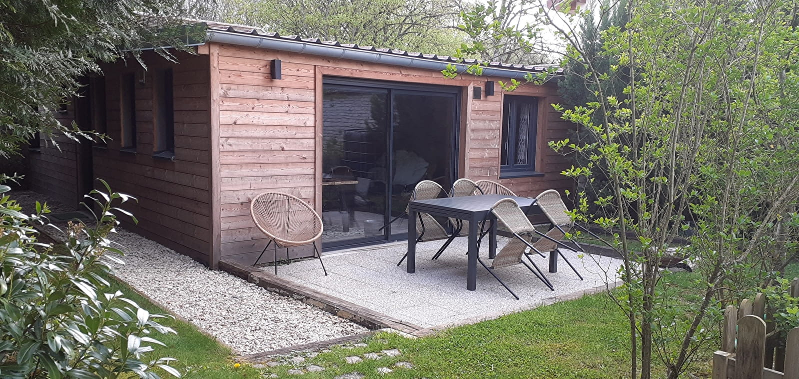 Cette construction en bois indépendante se trouve à l'écart au fond du jardin et bien à l'abri des regards derrière une grande haie. Au milieu de la nature et à 5 minutes à pied des commerces et restaurants. C'est l'endroit idéal pour des vacances de tout repos sans être coupé du monde. Une porte côté rue permet un accès piéton direct sans passer par la cour. Le quartier résidentiel est très calme et peu passager car c'est une rue sans issue. Le Parc National et ses belles randonnées ainsi que le musée, les abbayes, châteaux et autres vieilles pierres sauront occuper votre séjour.