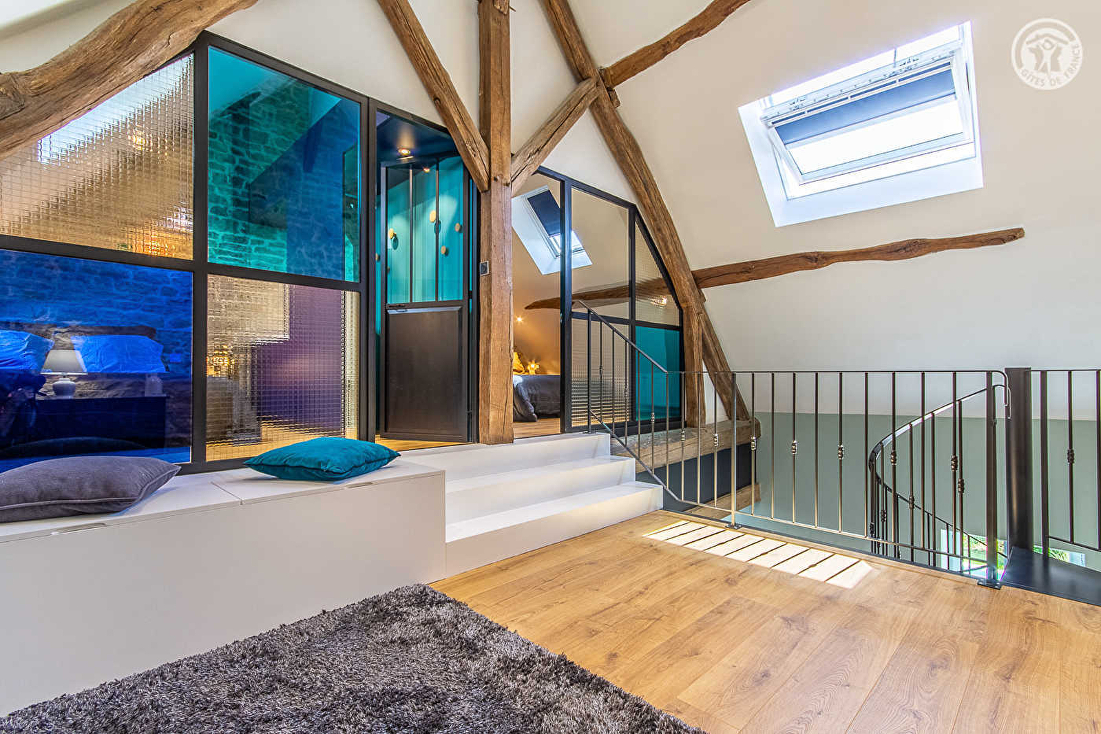 Thierry et Françoise vous accueillent au sein d'une authentique longère bourguignonne de caractère de 1860 chargée d'histoire, soigneusement restaurée dans les règles de l'art, ancienne demeure d'Antoine de Bary, peintre contemporain renommé. Calme absolu au sein d'un paisible petit village typique de la vallée de la Dheune, niché à 4 km du charmant bourg viticole & commerçant de Chagny (toutes commodités sur place), réputé pour son marché gastronomique du dimanche matin. Agréable cadre paysagé, en lisière de champs & prairies, à deux pas d'une vaste forêt domaniale. Spacieux gîte de grand confort aux prestations haut de gamme (publié dans divers magazines "déco"). Vaste pièce de vie. Élégant cachet contemporain d'esprit "loft champêtre" mariant ambiance industrielle & influences nordiques à une restauration patrimoniale soignée (murs en pierres et charpente d'origine). Énormément de charme & style. Ultra cosy & cocooning. Ambiance cossue & raffinée. Équipement complet de grande qualité. Ravissant jardin intimiste clos de 400m² (blotti à l'abri des regards derrière d'historiques murs d'enceinte), doté d'une large terrasse en gravier (exposée & ombragée) & d'un terrain de pétanque sur cour. Belle piscine (4x9m) ouverte sur la campagne environnante, sise côté jardin propriétaires.