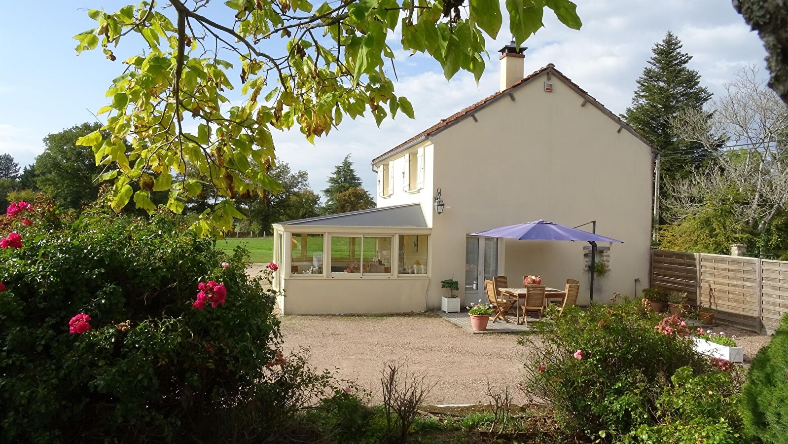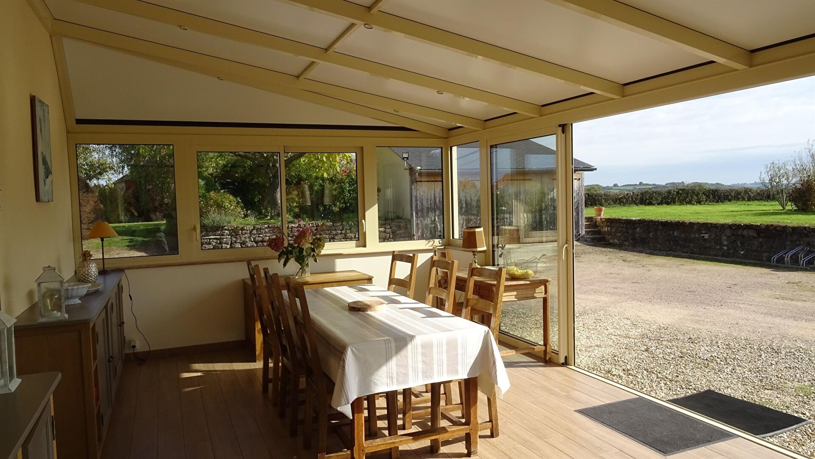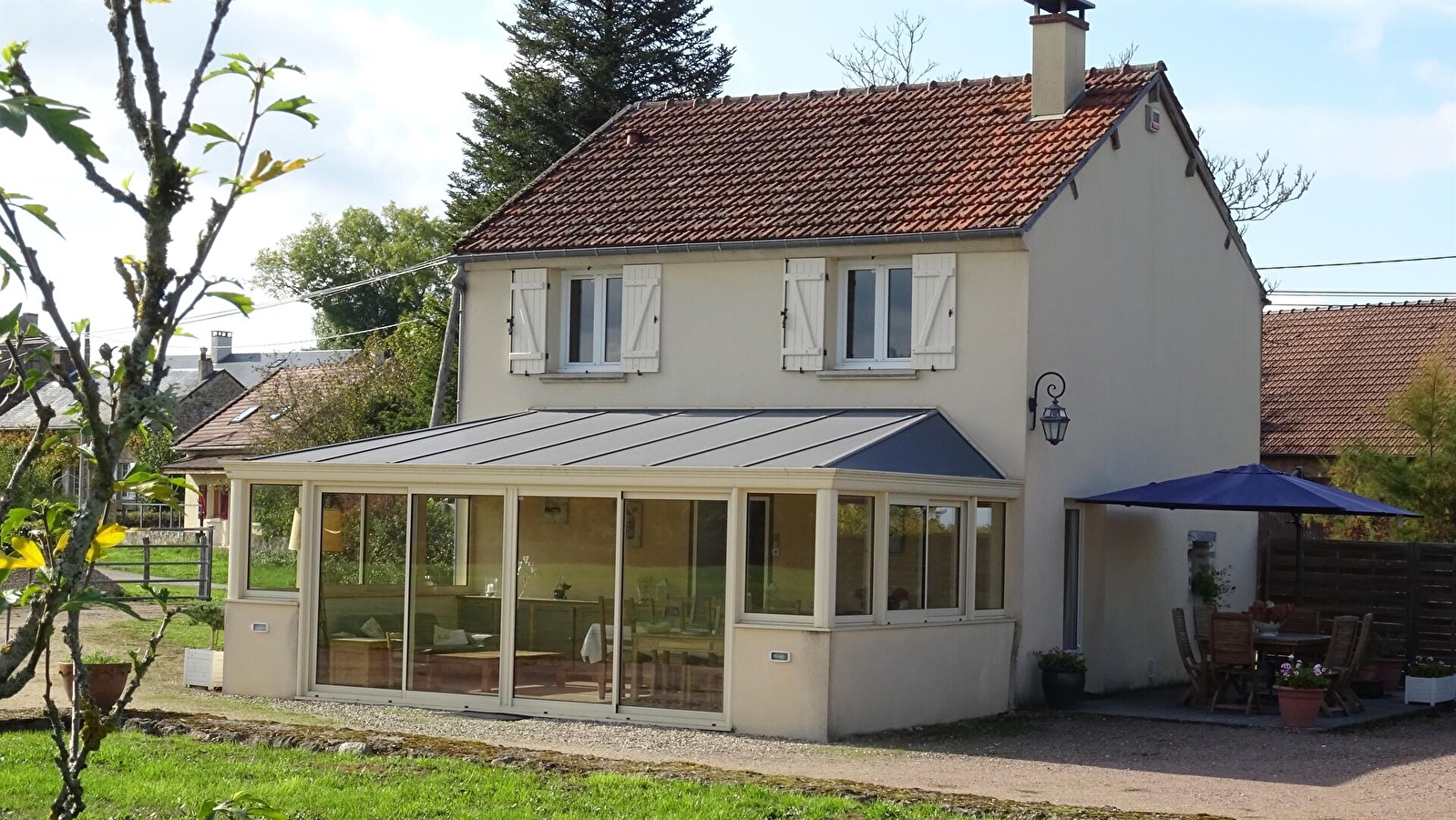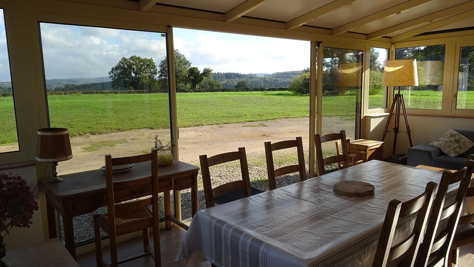 Une grande véranda (24m²), donnant sur le terrain, offre une vue imprenable sur le Morvan et ses forêts.