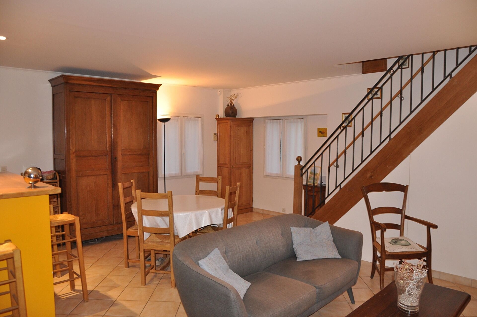 Une mezzanine de 12 m² accessible par un escalier depuis le palier est equipée d'un lit de 90 .